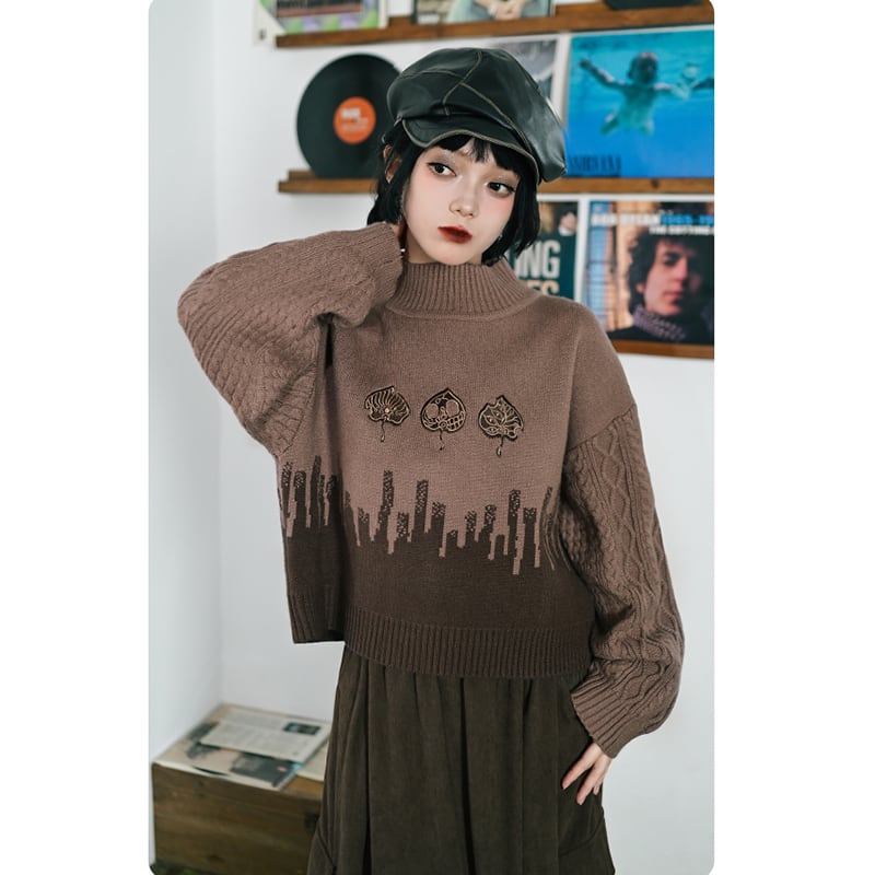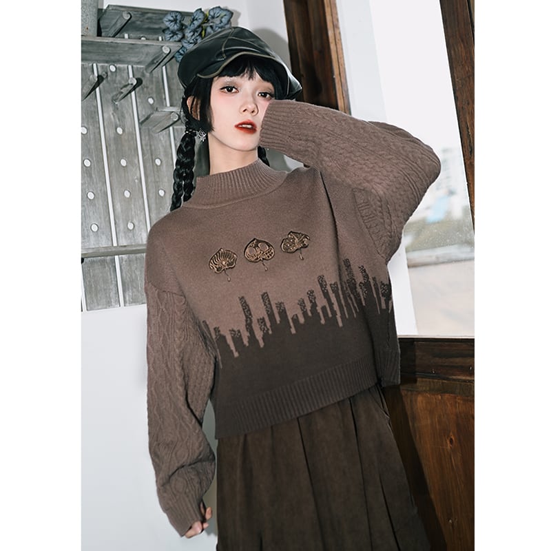 【古怪舍---輪回シリーズ】★チャイナ風トップス★ 刺繍 セーター ニットトップス ショート丈 レトロ