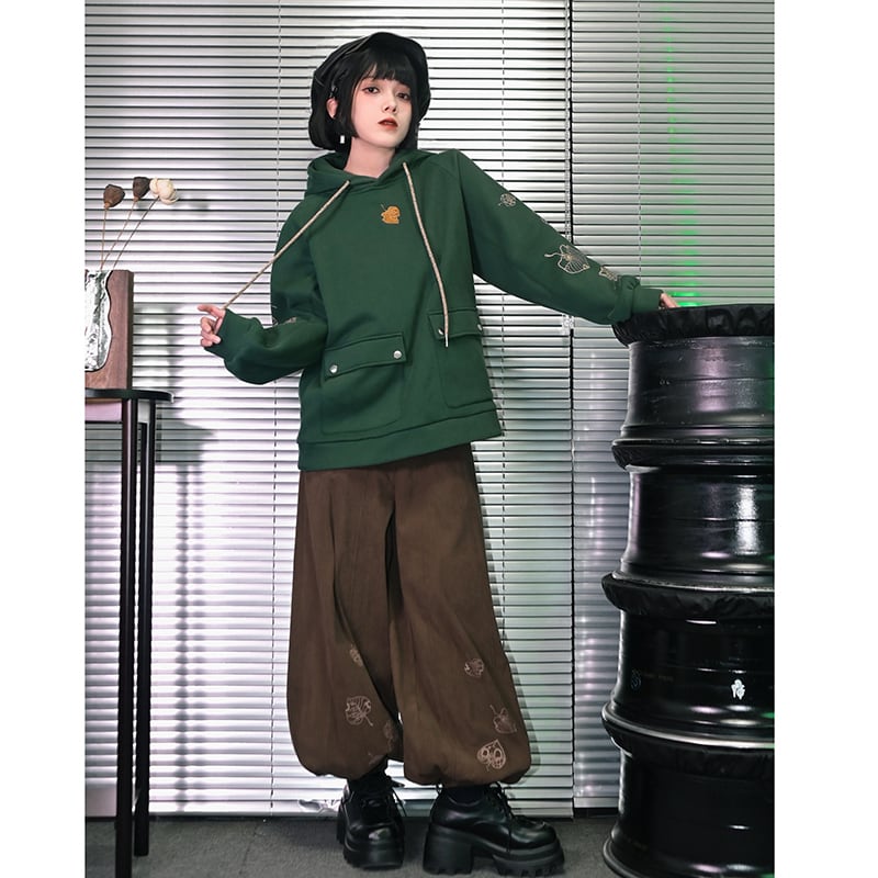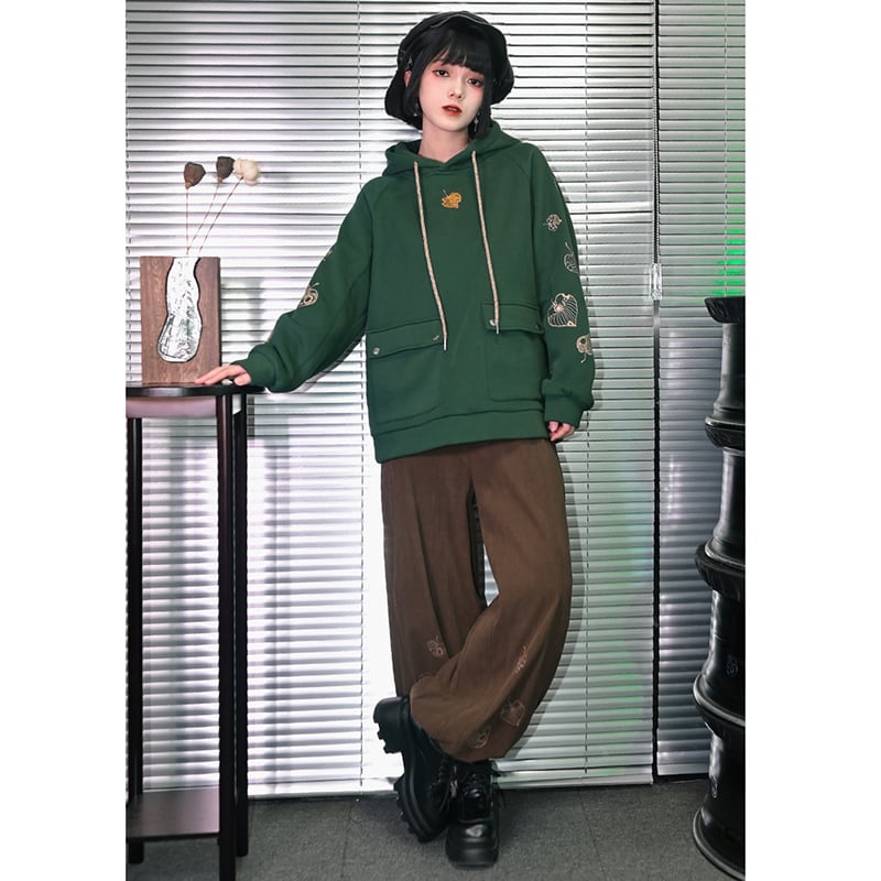 【古怪舍---輪回シリーズ】★チャイナ風ズボン★ ボトムス カジュアルパンツ 厚て 秋冬 コーヒー色 コーデュロイ
