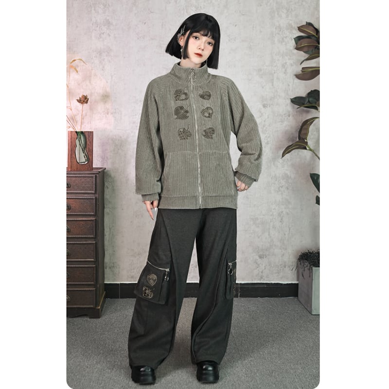 【古怪舍---輪回シリーズ】★チャイナ風ズボン★ 刺繍 ボトムス カジュアルパンツ 厚て ラシャ 秋冬 ポケット有り