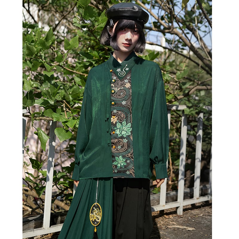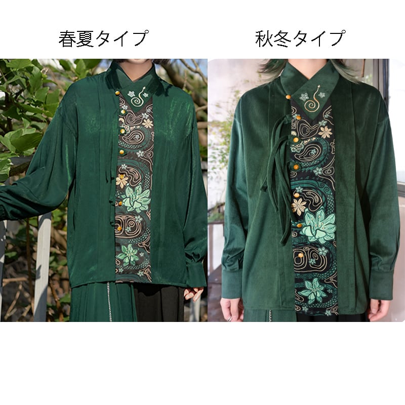 【古怪舍---升卿シリーズ】★チャイナ風トップス★ 春夏タイプor秋冬タイプ シャツ 中華服 長袖シャツ オリジナル 超可愛い グリーン 緑