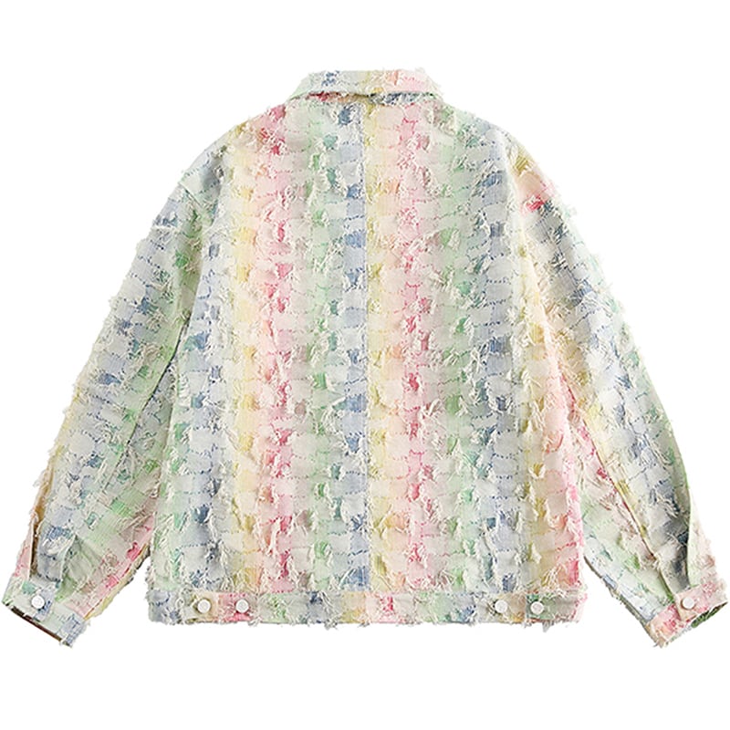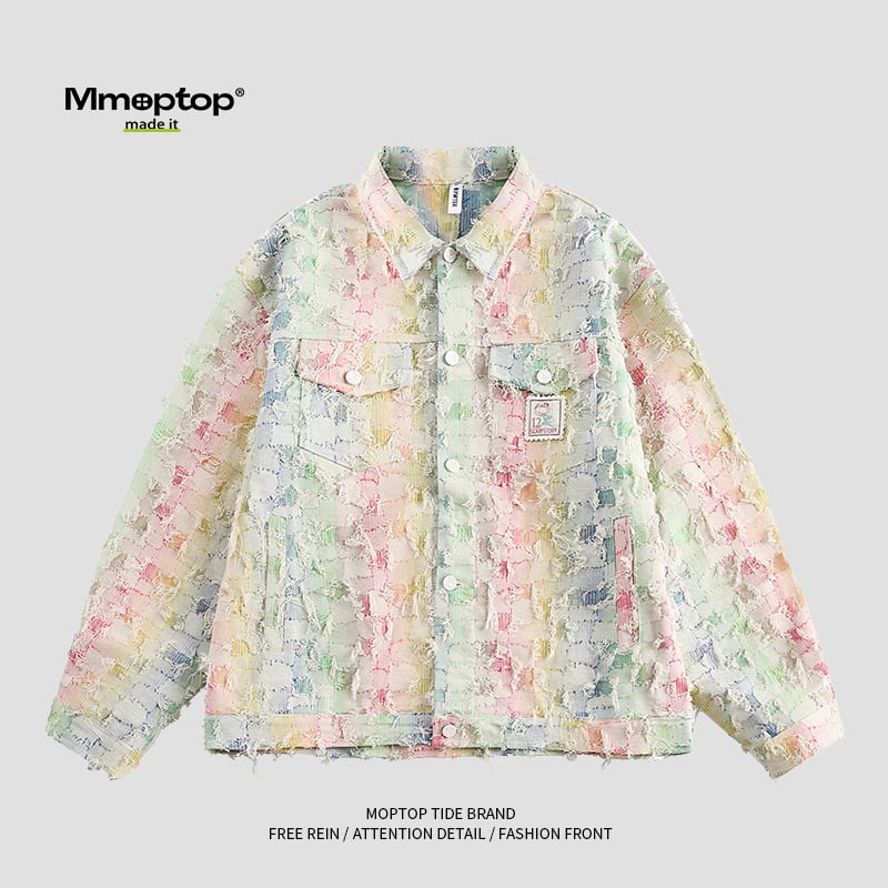 【Mmoptopシリーズ】★ジャケット★ アウター 男女兼用 メンズ 彩り チェック柄 ダメージ加工 おしゃれ カジュアル