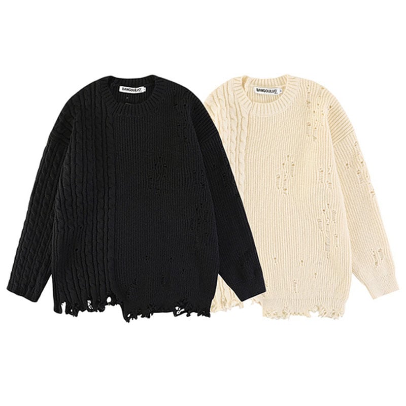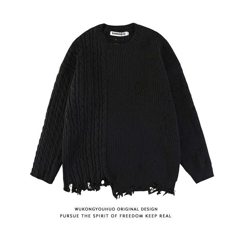 【悟シリーズ】★セーター★ 2color ニットトップス 男女兼用 メンズ アメリカン ダーク ダメージ加工 ラウンドネック ユニセックス
