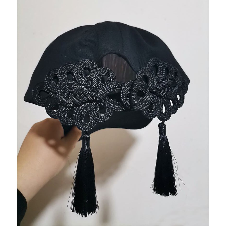 【EVBABYシリーズ】★チャイナ風帽子★ コットン ぼうし レディース チャイナボタン 黒 ブラック アクセサリー