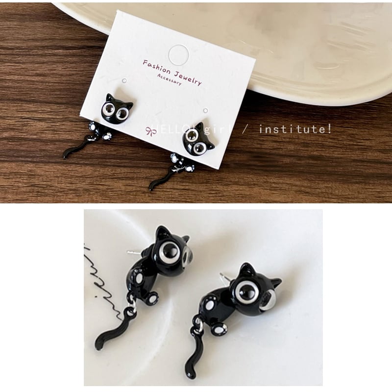 【GIRL INSTITUTEシリーズ】★耳飾り★ 猫 ねこ ネコ ピアス ペア アクセサリー レディース 黒 可愛い