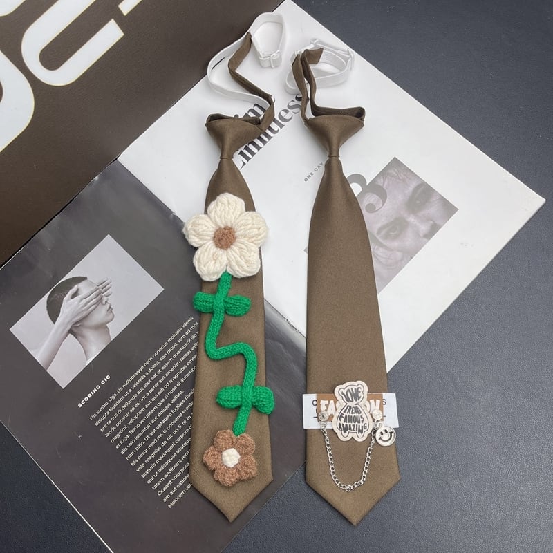 【JINYEシリーズ】★ネクタイ★ 簡単着脱! 2color 花柄 小物 飾り物 メンズ 男女兼用 レトロ ブラウン 可愛い
