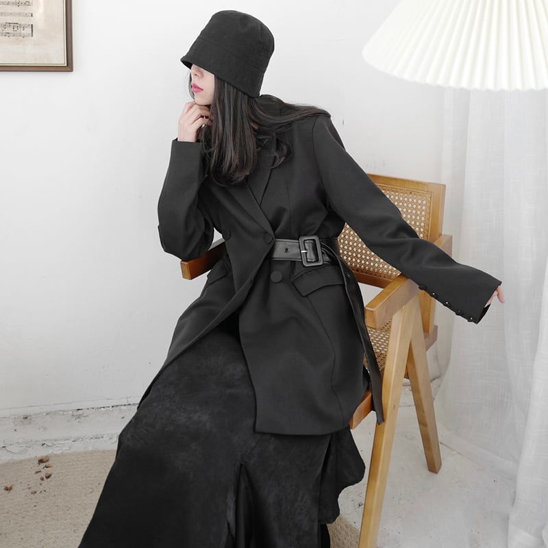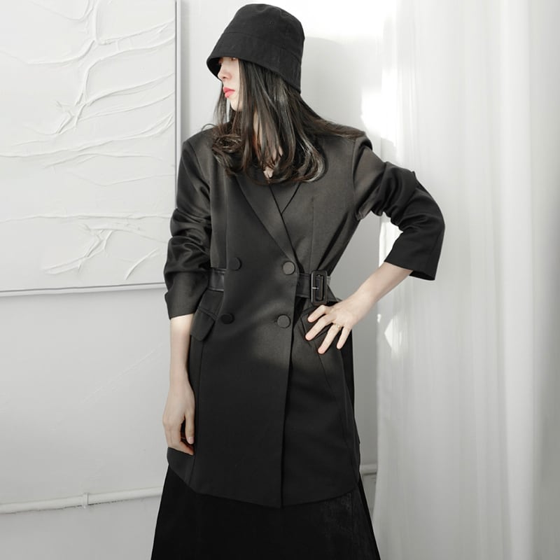 【隱覓シリーズ】★ブレザー★ ラシャ トレンチコート 厚て デザイン性有り ブラック 黒い かっこいい