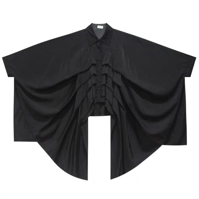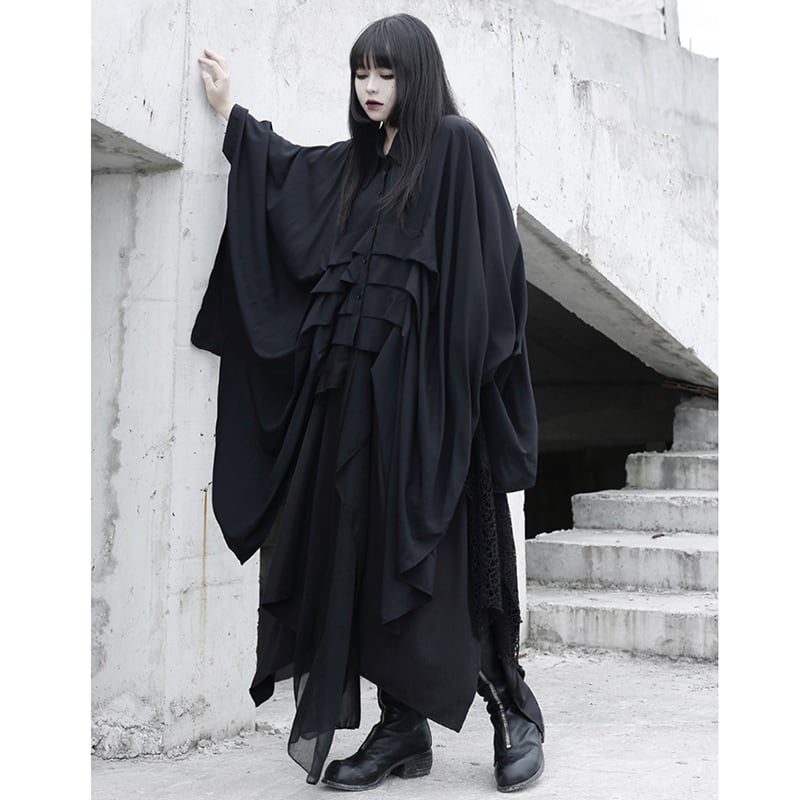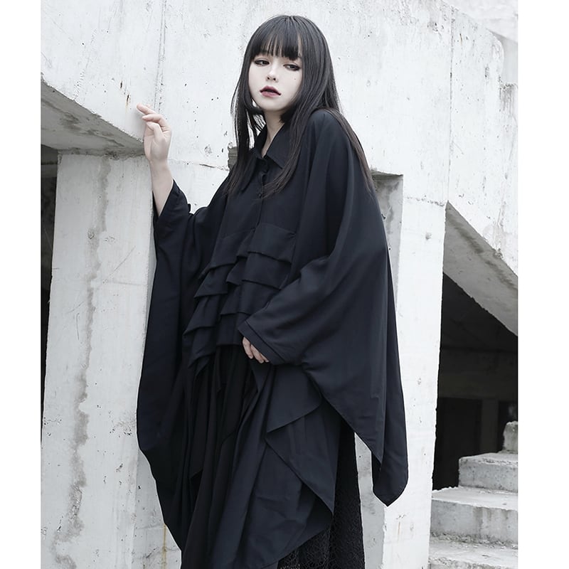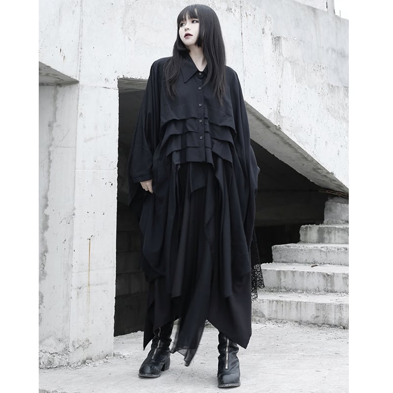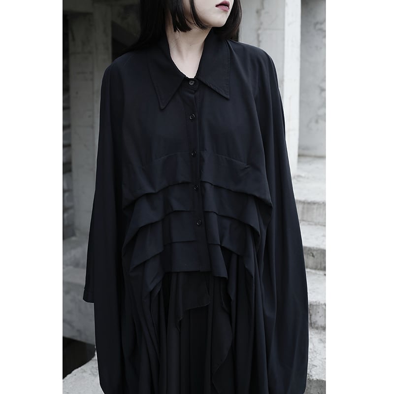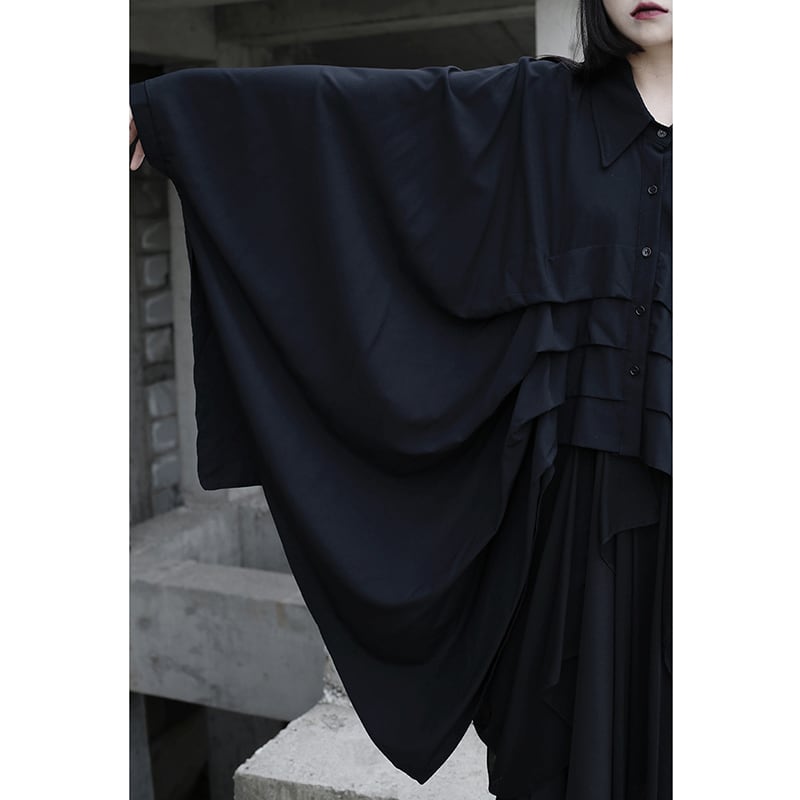 【隱覓シリーズ】★シャツ★ トップス 長袖シャツ デザイン性有り ブラック 黒い 着痩せ 不規則 ドルマンスリーブ