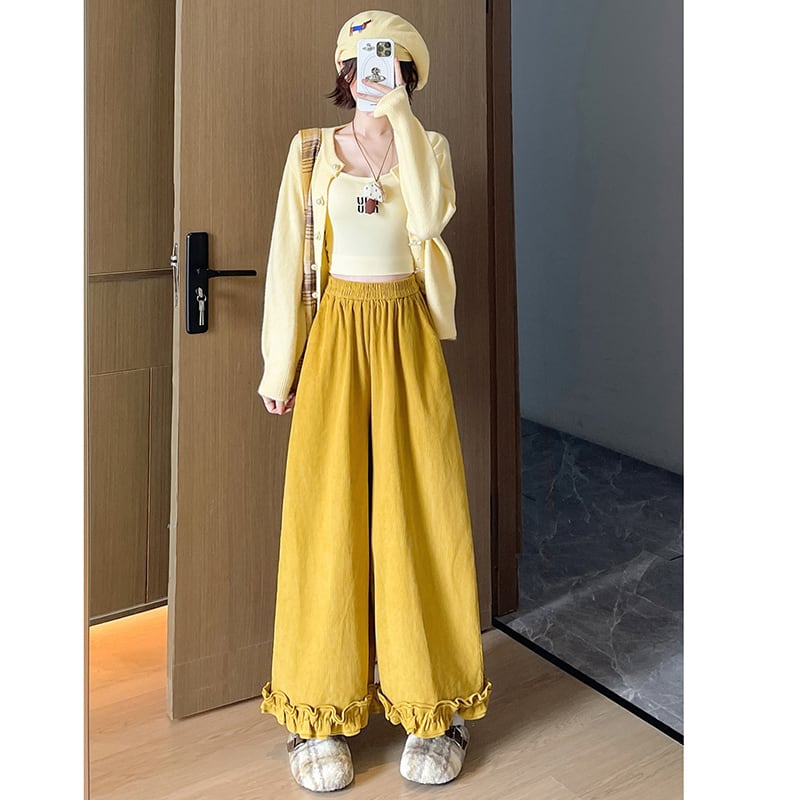 ❀高ウエストで、すっきり九分!【Momoシリーズ】★ズボン★ 4color ボトムス コーデュロイ 可愛い