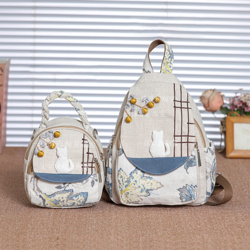Φ人気の軽量猫柄キャンバスリュック!【BDSJシリーズ】★バッグ★ 3サイズ選択可能 手作りバッグ リュックサック 猫