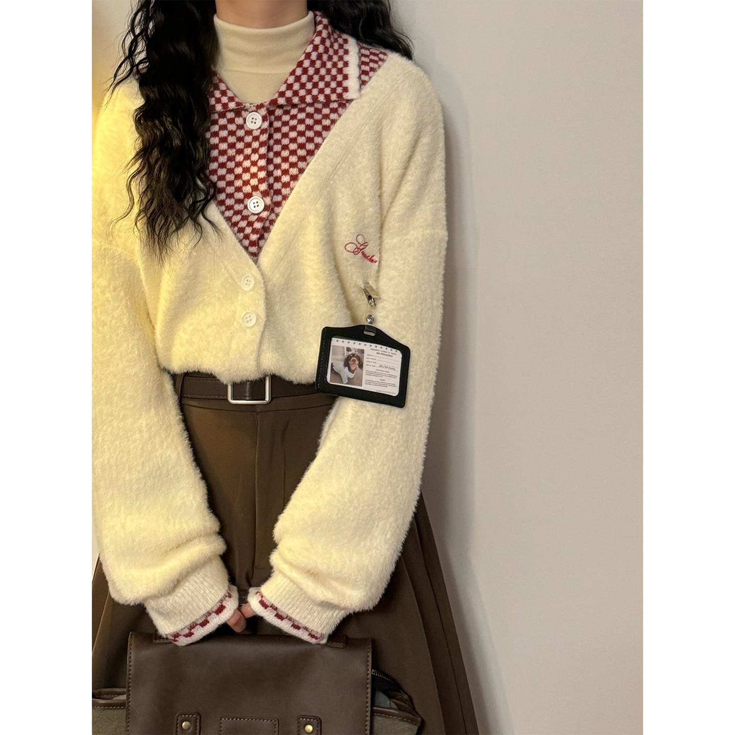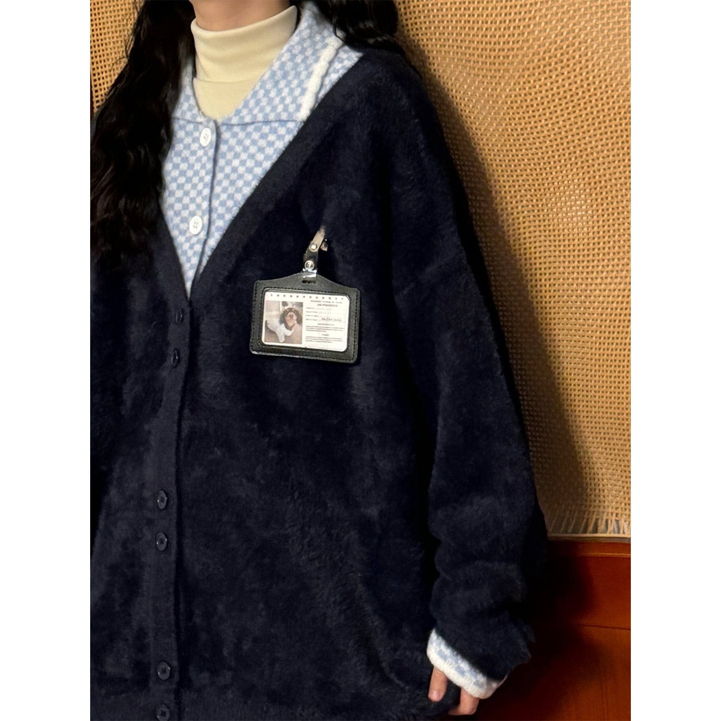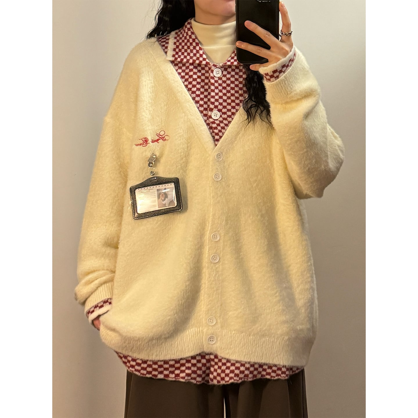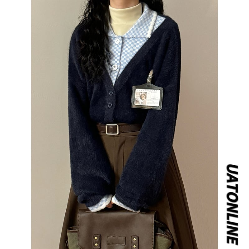 ♥ふんわり暖かい、くつろぎニット!【UATONLINEシリーズ】★セーター★ カーディガン 2color チェック柄 男女兼用 メンズ フェイクレイヤード