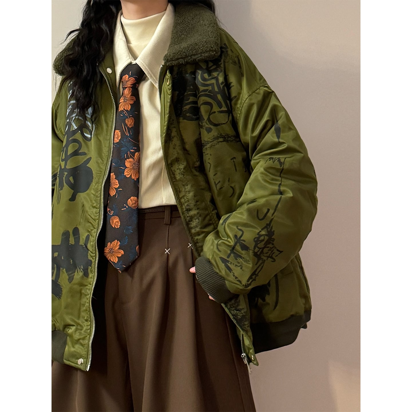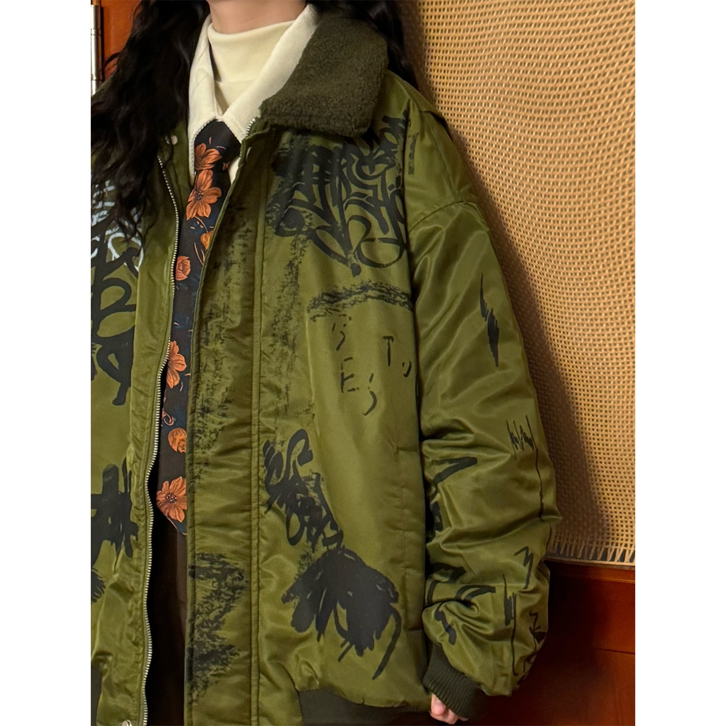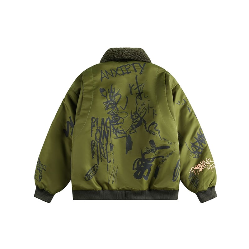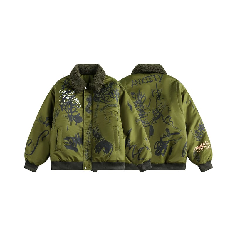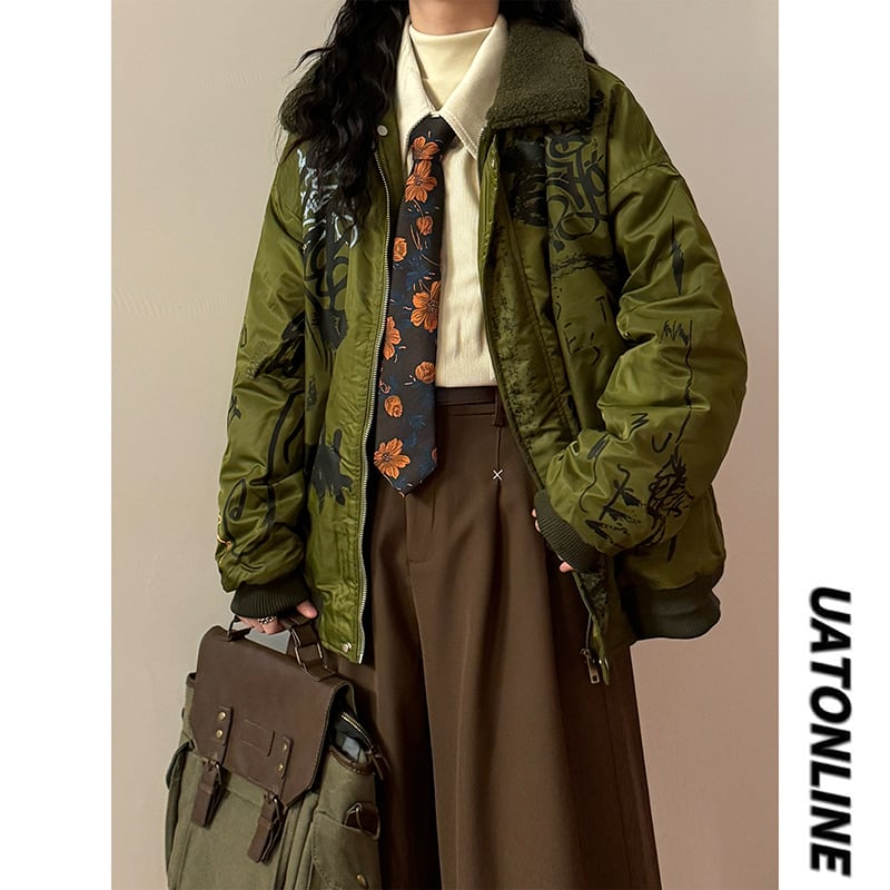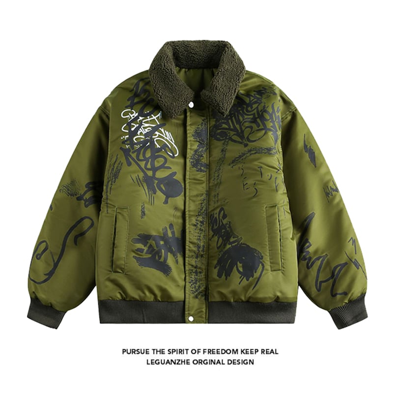 ♥ストリートな落書き綿入れコート!【UATONLINEシリーズ】★綿入れコート★ 冬陽コート アウター 男女兼用 メンズ 緑