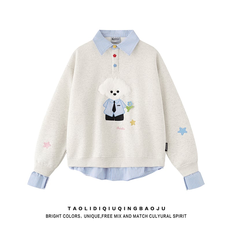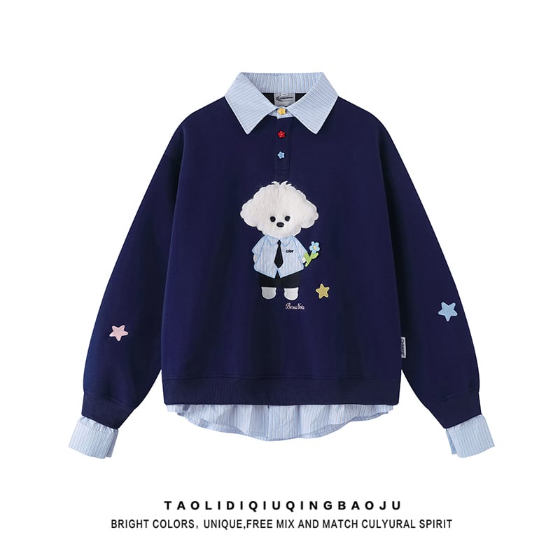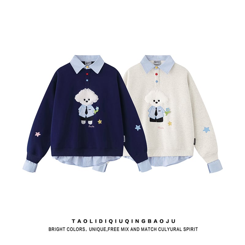 ♥フェイクレイヤード犬柄POLOシャツ!【逃離地球シリーズ】★トップス★ 男女兼用 2color メンズ 縦縞 縞模様
