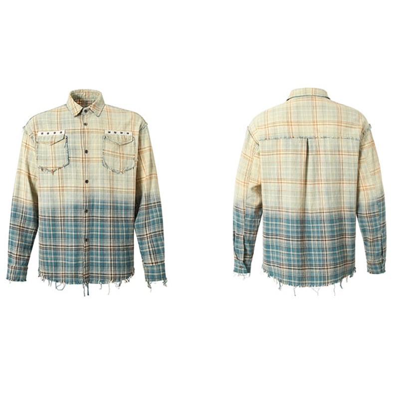 ♥グラデーションチェック柄シャツ【K787シリーズ】★シャツ★ 男女兼用 メンズ トップス カジュアル