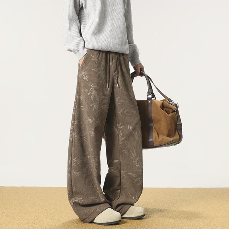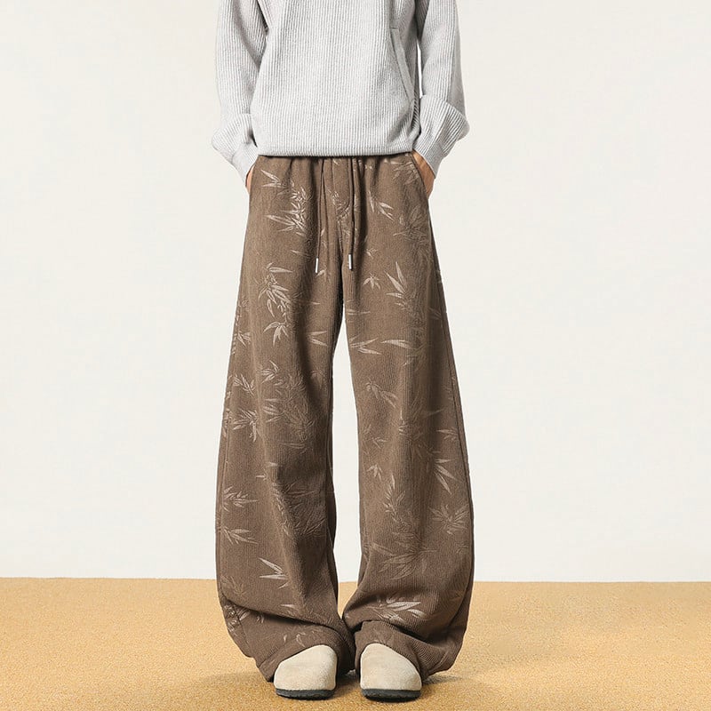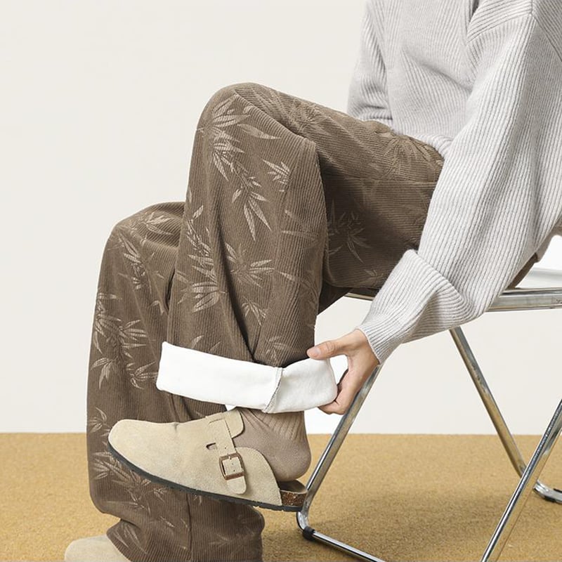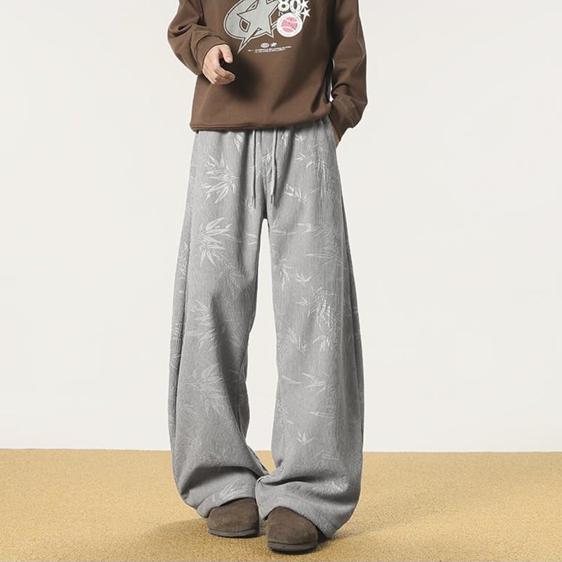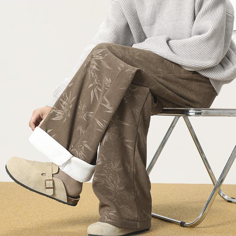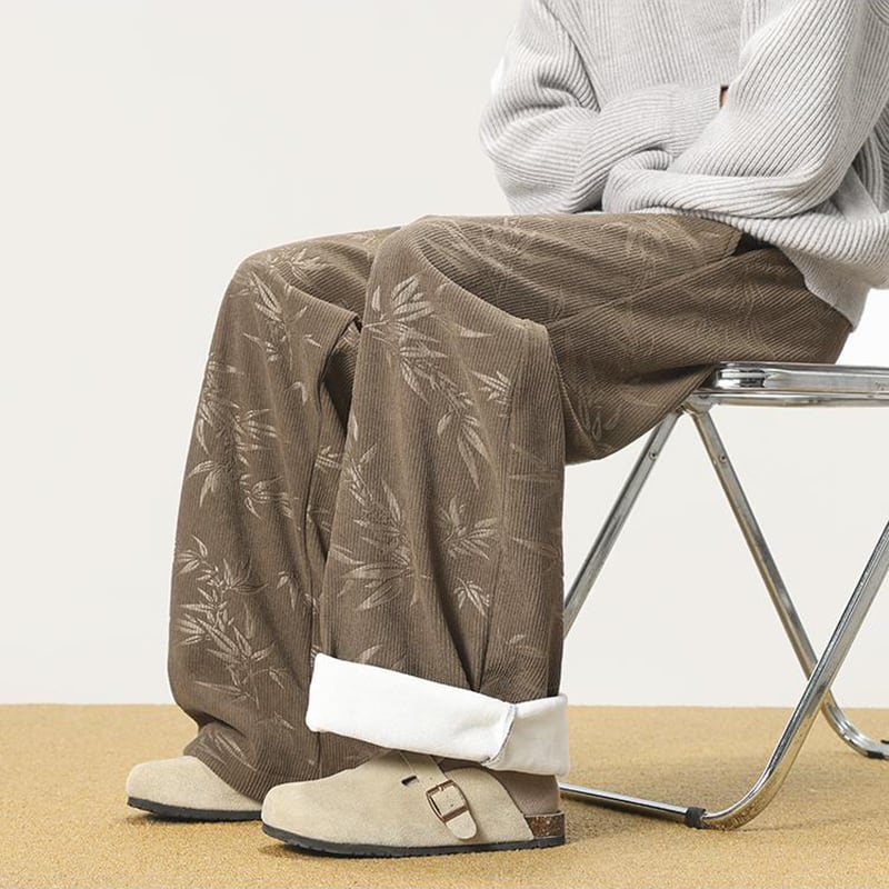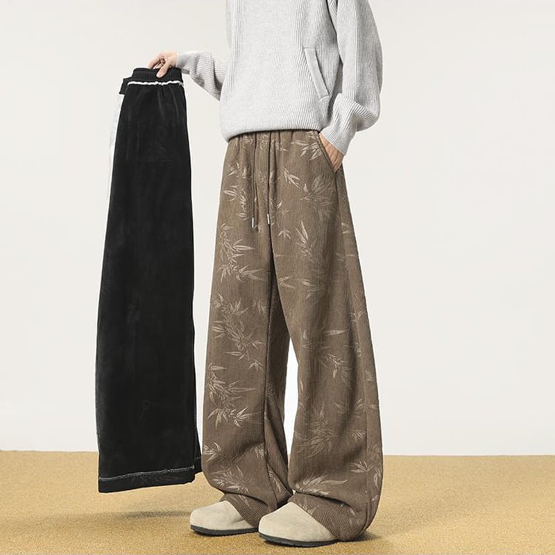 ♫コーデュロイ裏起毛竹柄パンツ!【CEXUシリーズ】★チャイナ風ズボン★ 裏起毛 カジュアルパンツ ボトムス 男女兼用 メンズ
