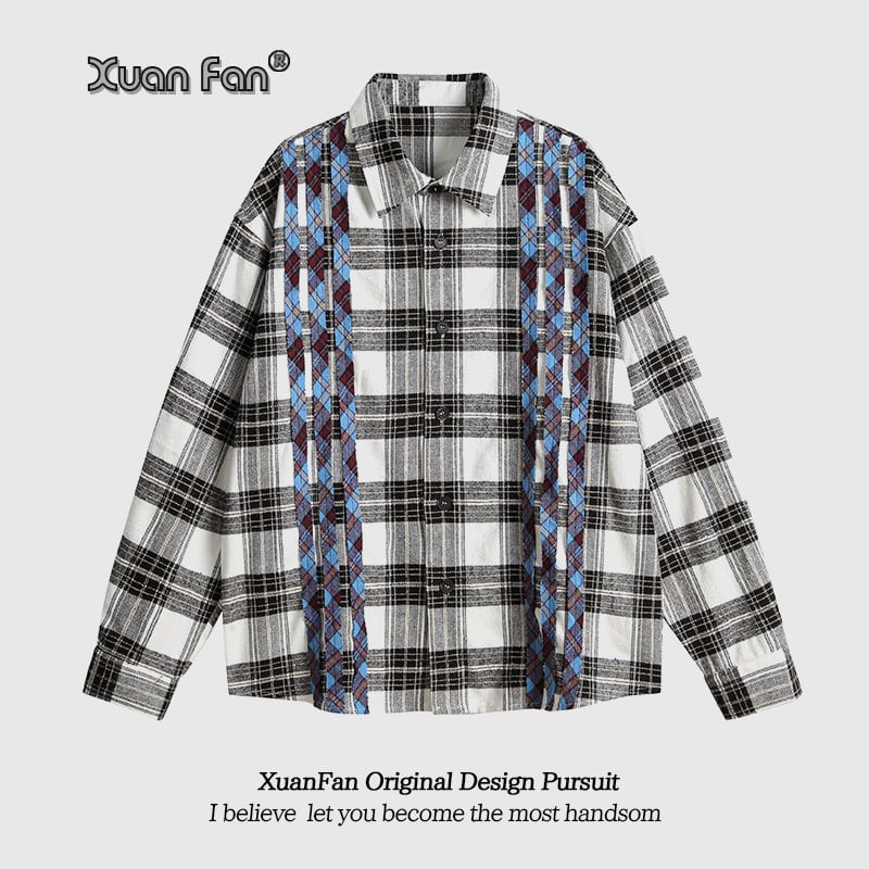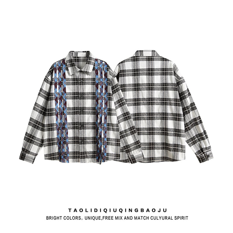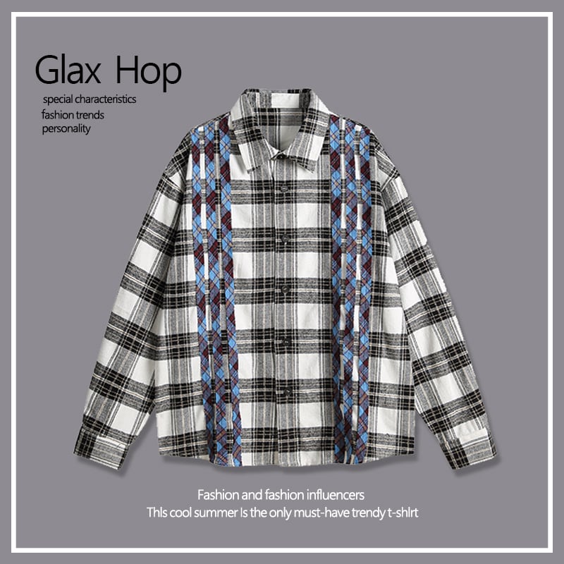 ♥くつろぎチェック柄シャツ!【Glax Hopシリーズ】★シャツ★ 切り替え 男女兼用 メンズ トップス おしゃれ