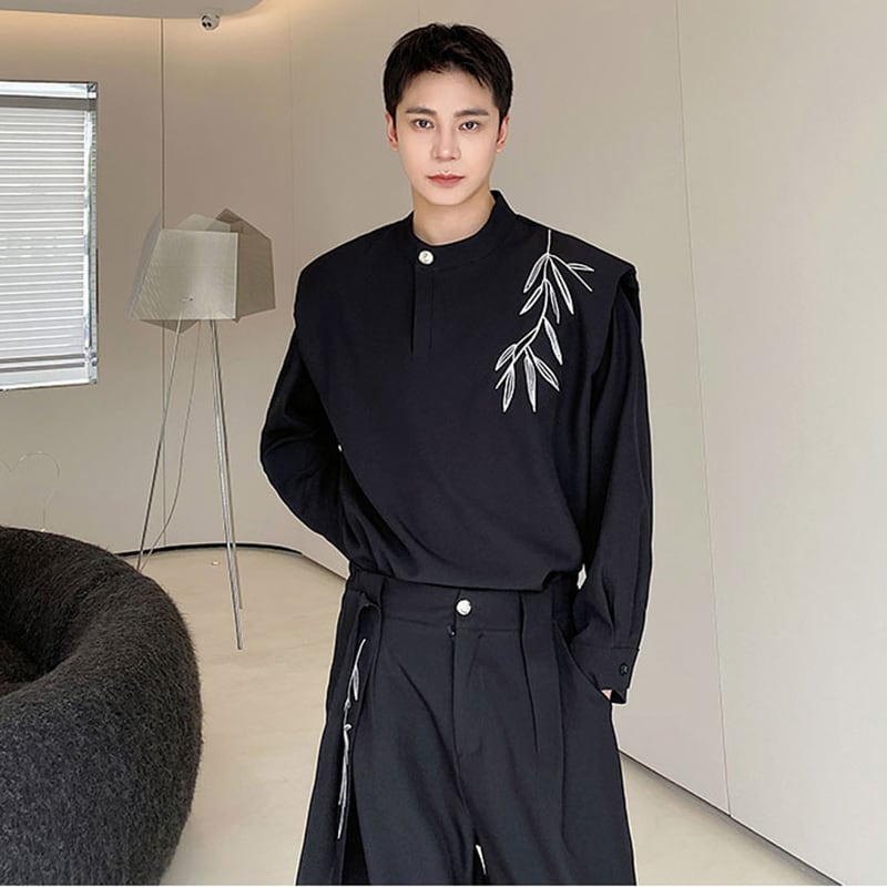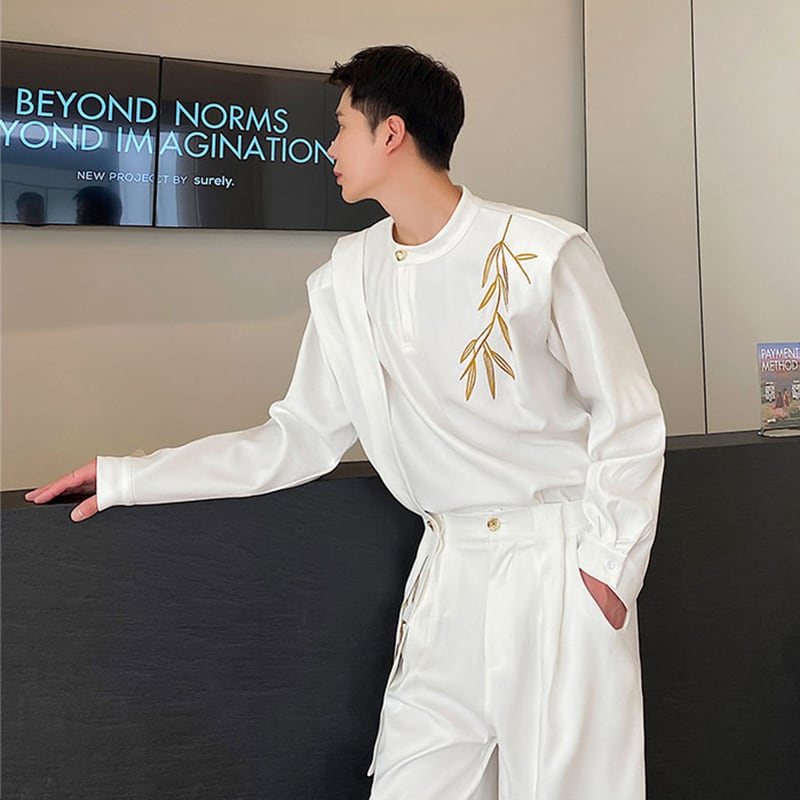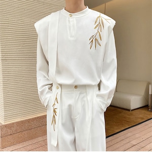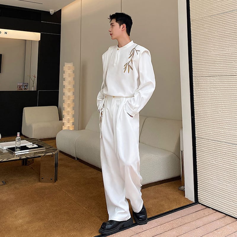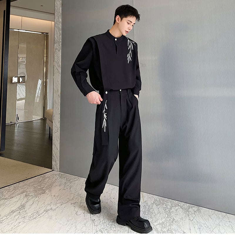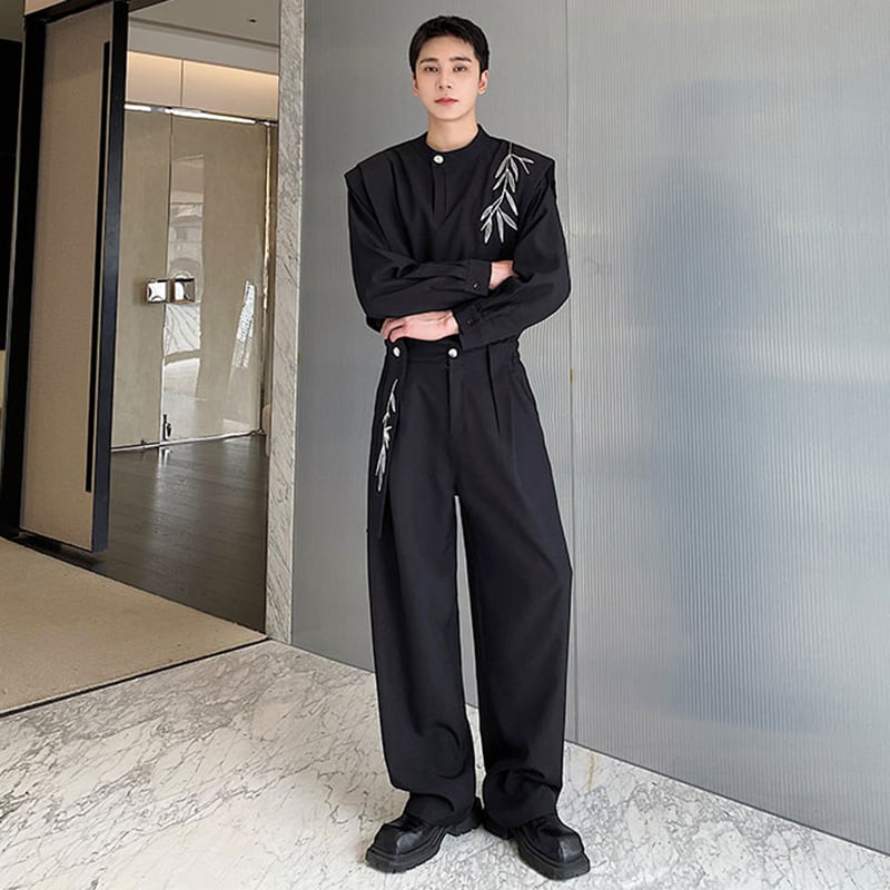 ☼モダン・チャイナスタイルセット!【入画シリーズ】★セットアップ★ 刺繍 2color 男女兼用 2点セット メンズ かっこいい