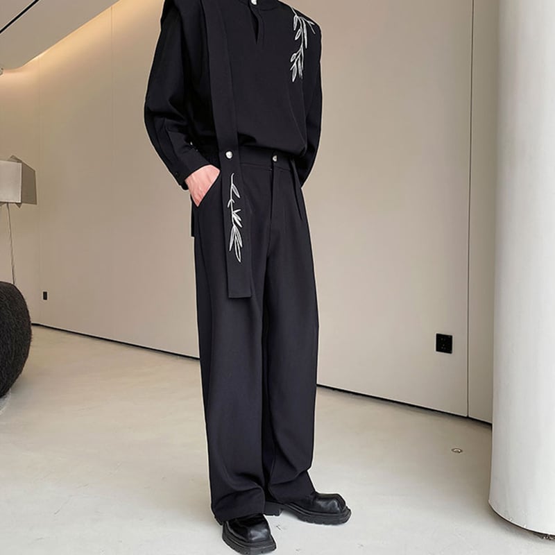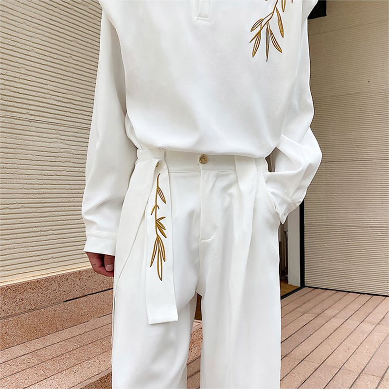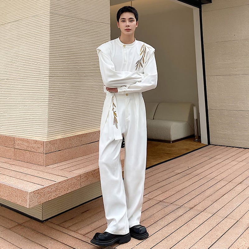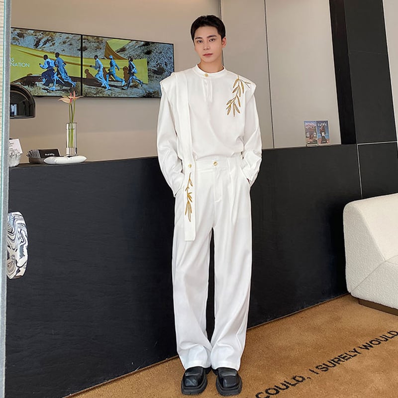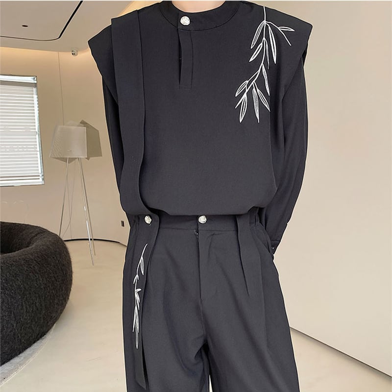 ☼モダン・チャイナスタイルセット!【入画シリーズ】★セットアップ★ 刺繍 2color 男女兼用 2点セット メンズ かっこいい