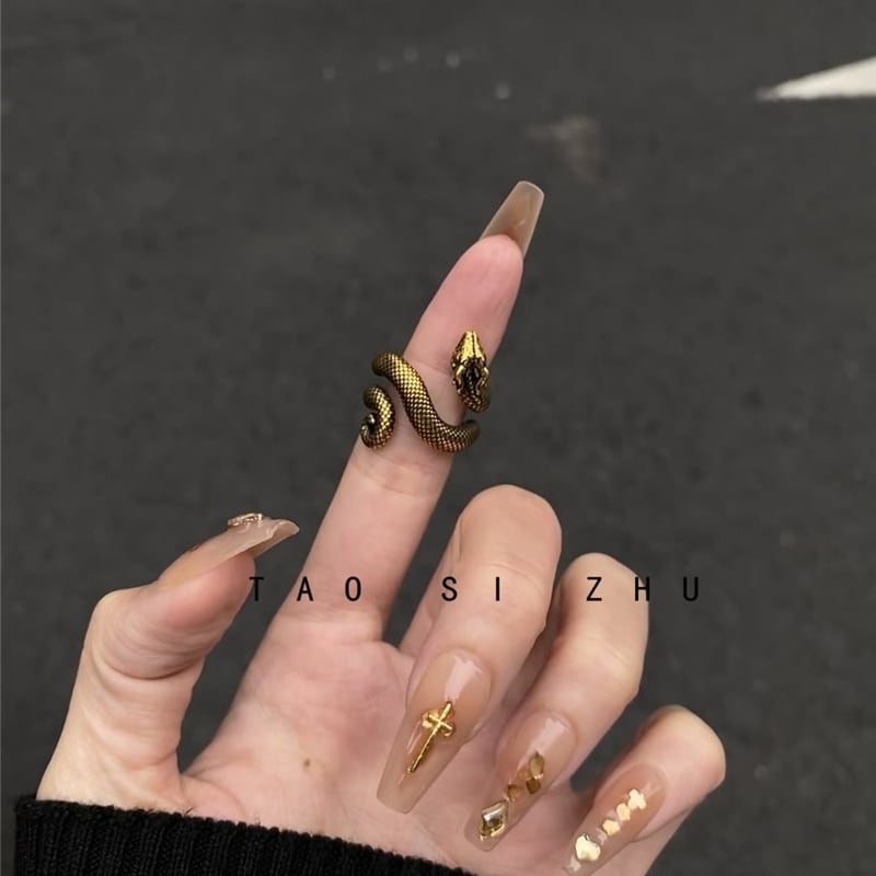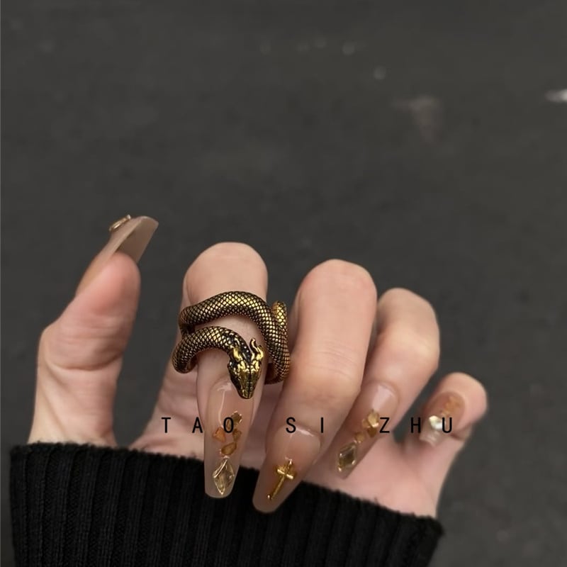 ❁金色のヘビが纏う指先!【RDZYシリーズ】★指輪★ 開け口調整可 1個 ゆびわ アクセサリー 小物 蛇 レトロ