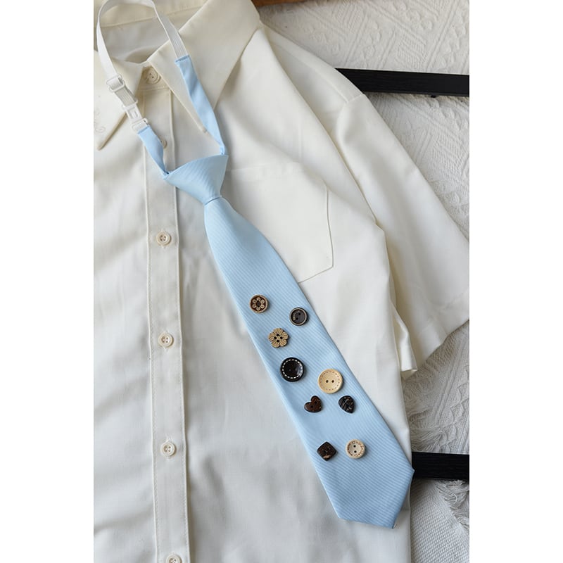 ♫ボタンモチーフ簡単着脱ネクタイ!【霖悅君シリーズ】★ネクタイ★ 12color 男女兼用 小物 飾り物 メンズ レディース レトロ