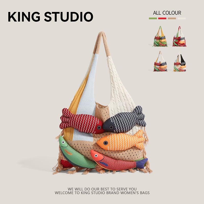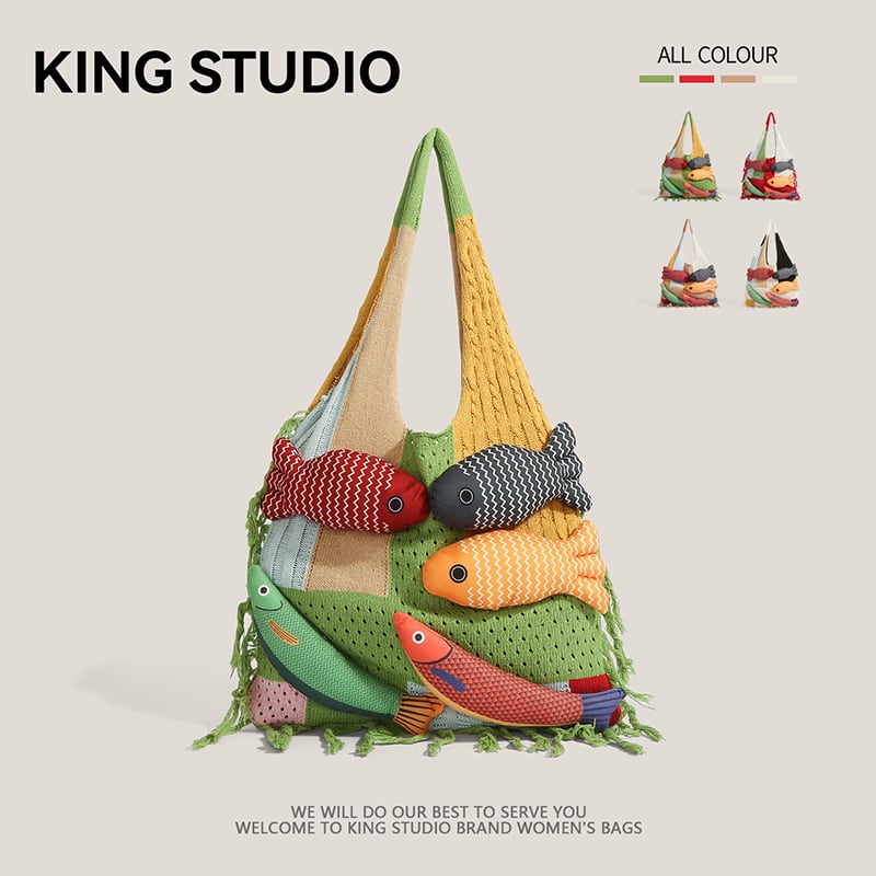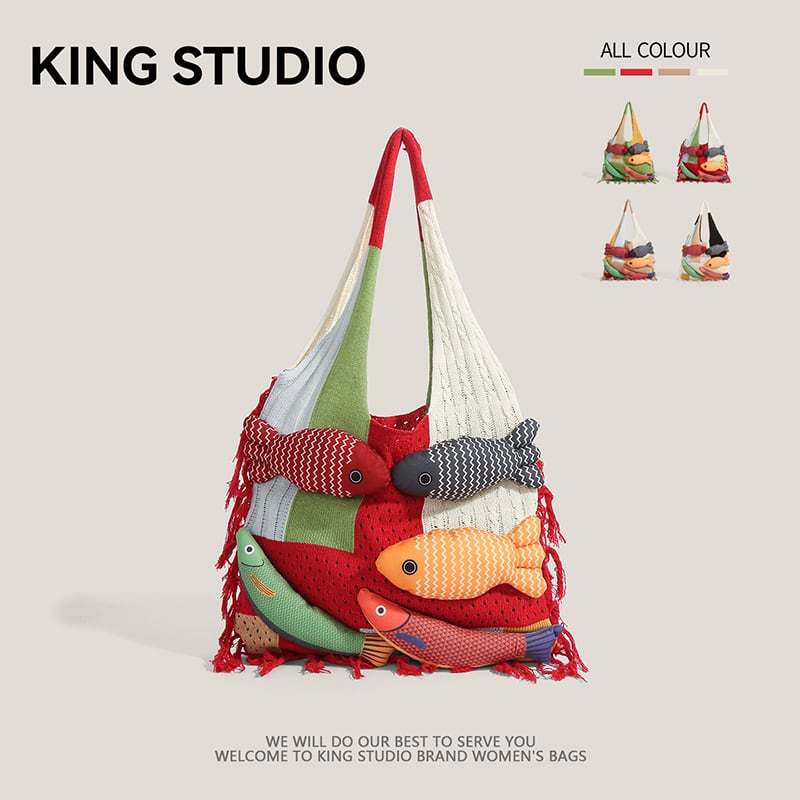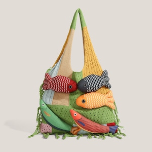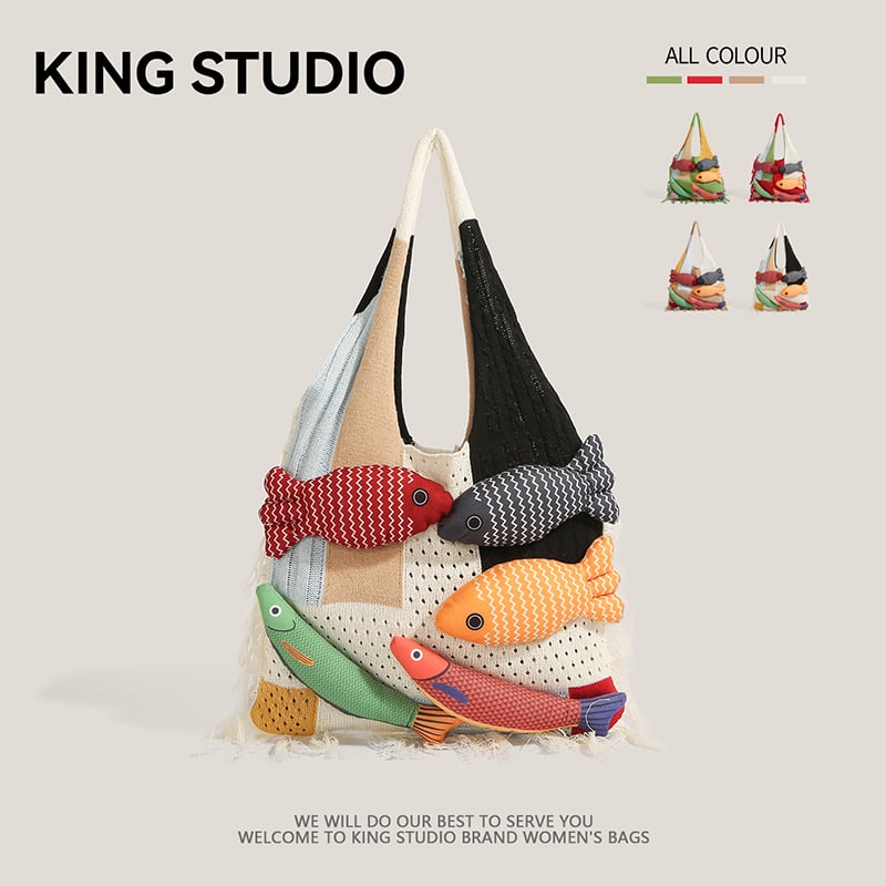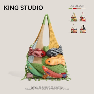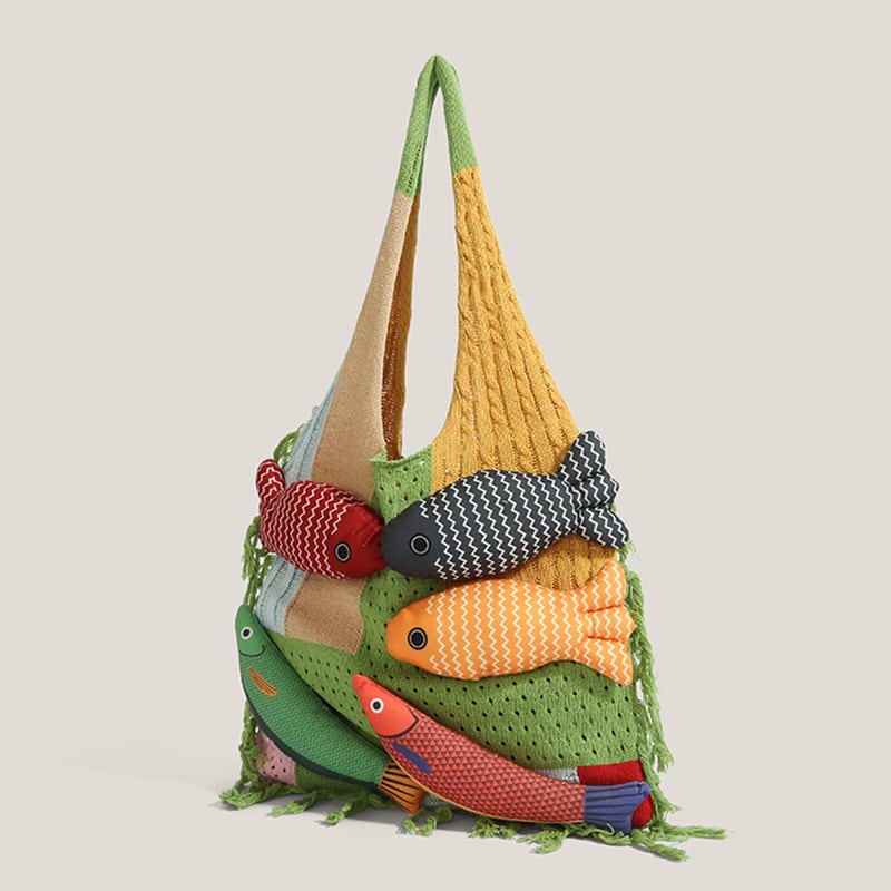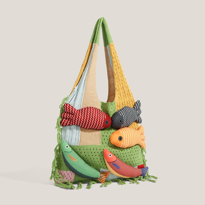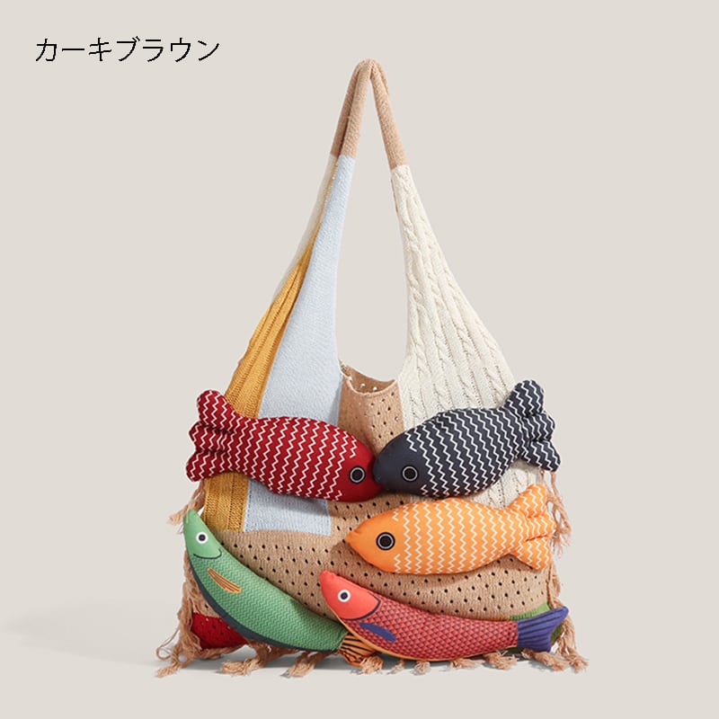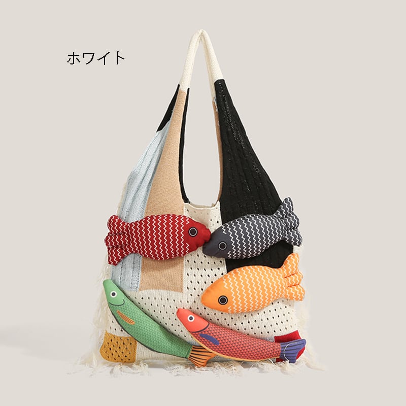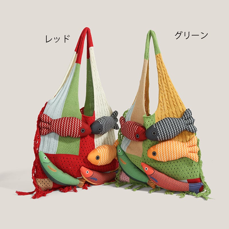 ✿魚モチーフのニットバッグ!【DrinKingシリーズ】★バッグ★ 3color 肩掛けバッグ レディース 大容量 可愛い