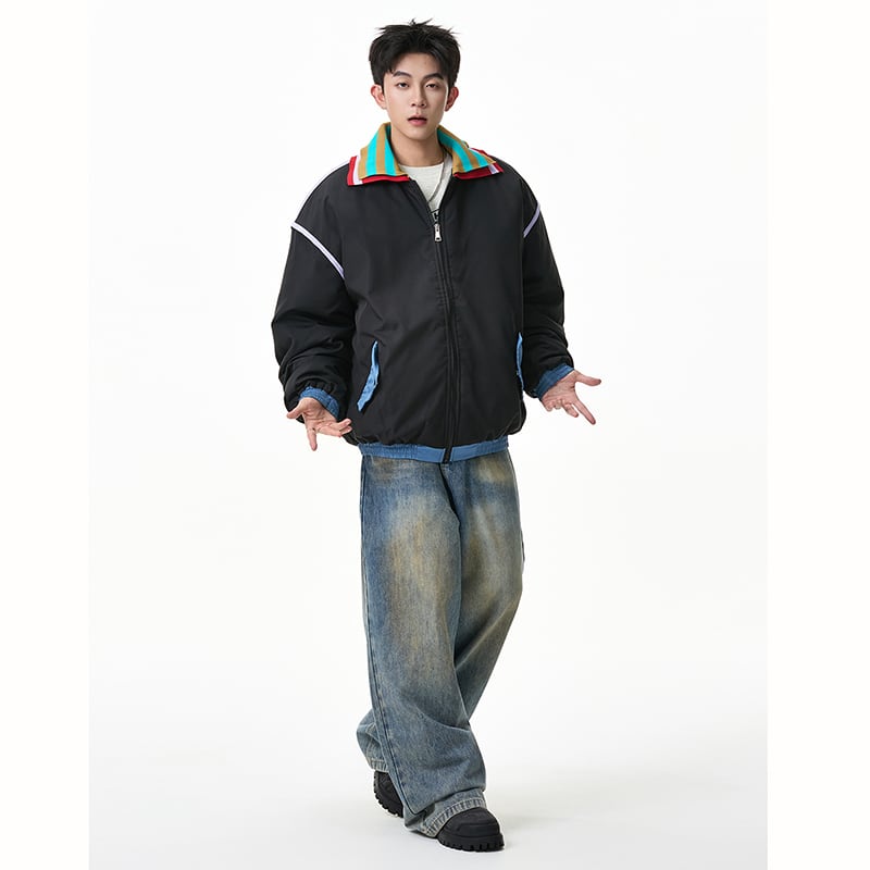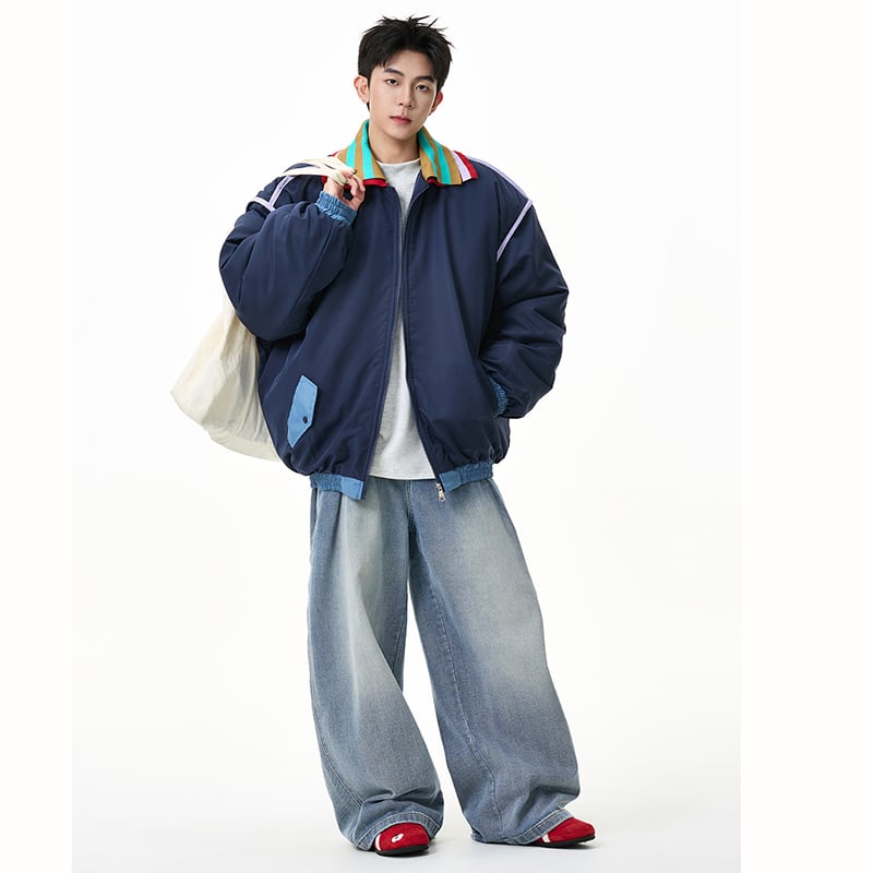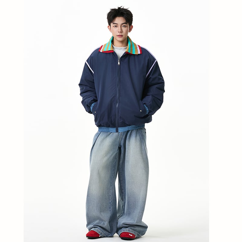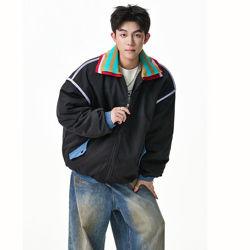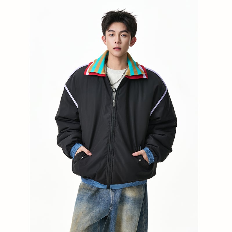 ☼重ね着ルックコート!【V37シリーズ】★綿入れコート★ 2color 男女兼用 アウター メンズ POLOネック