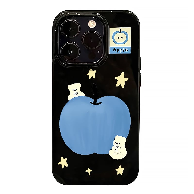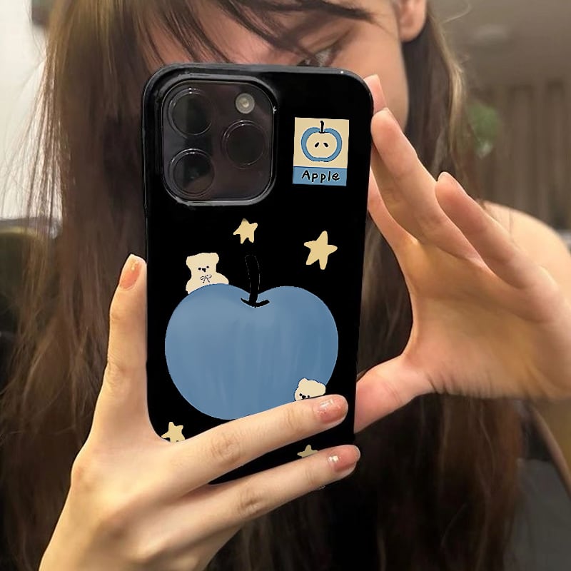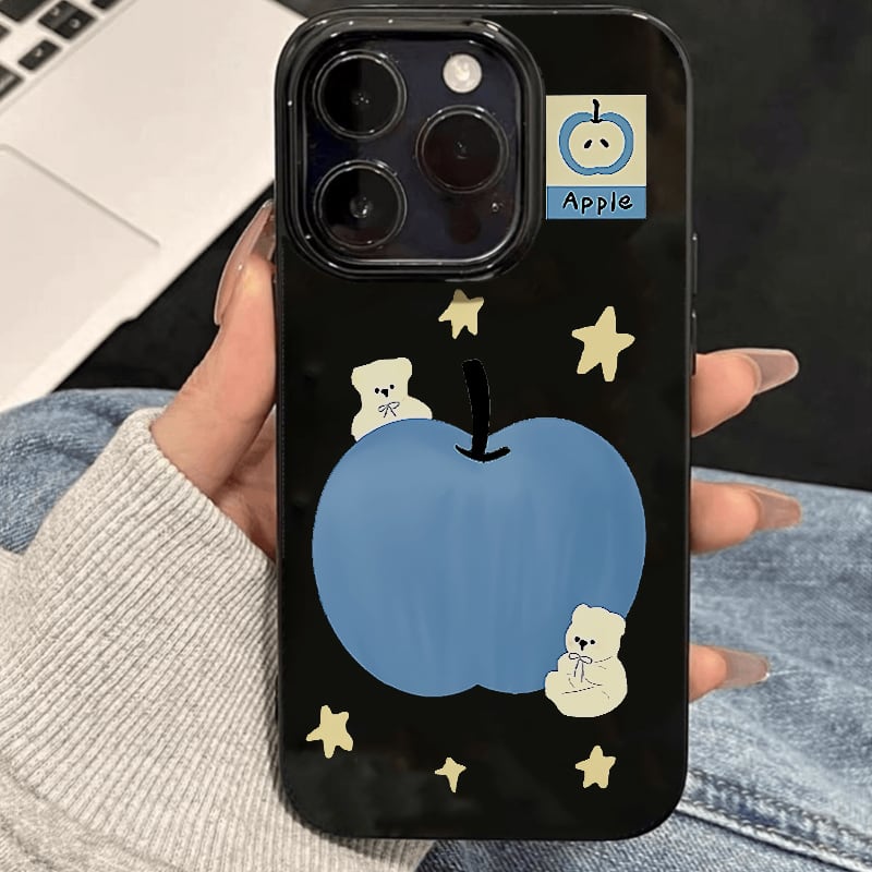 ♫りんごと熊柄配色iPhoneケース!【BOBOBOシリーズ】★携帯ケース★ アイホンケース 青 黒 可愛い