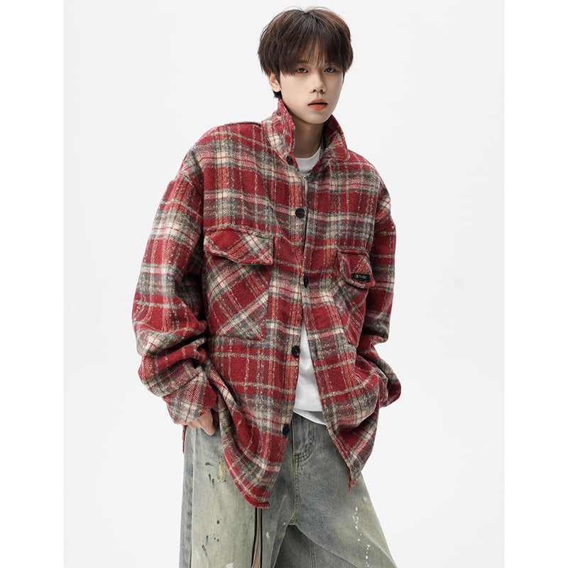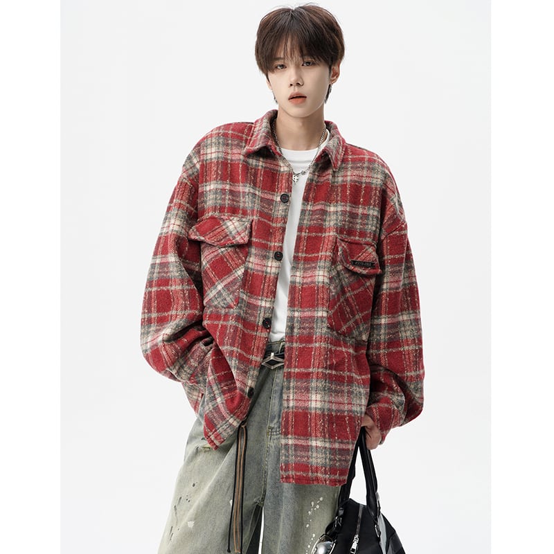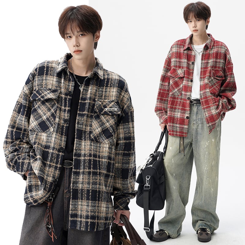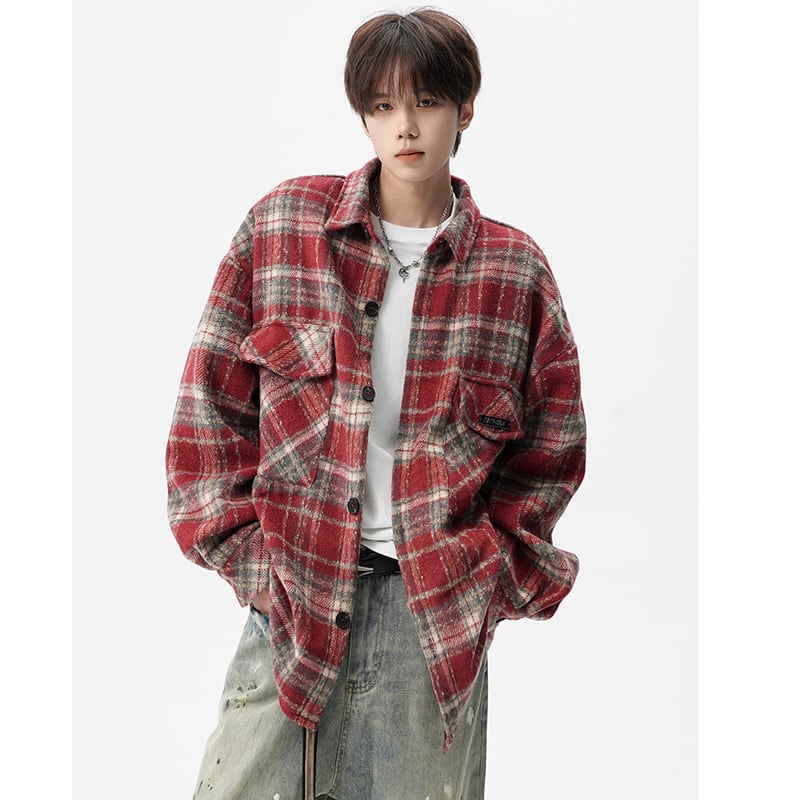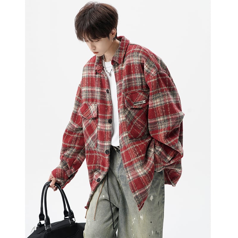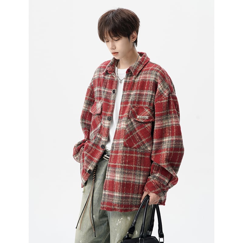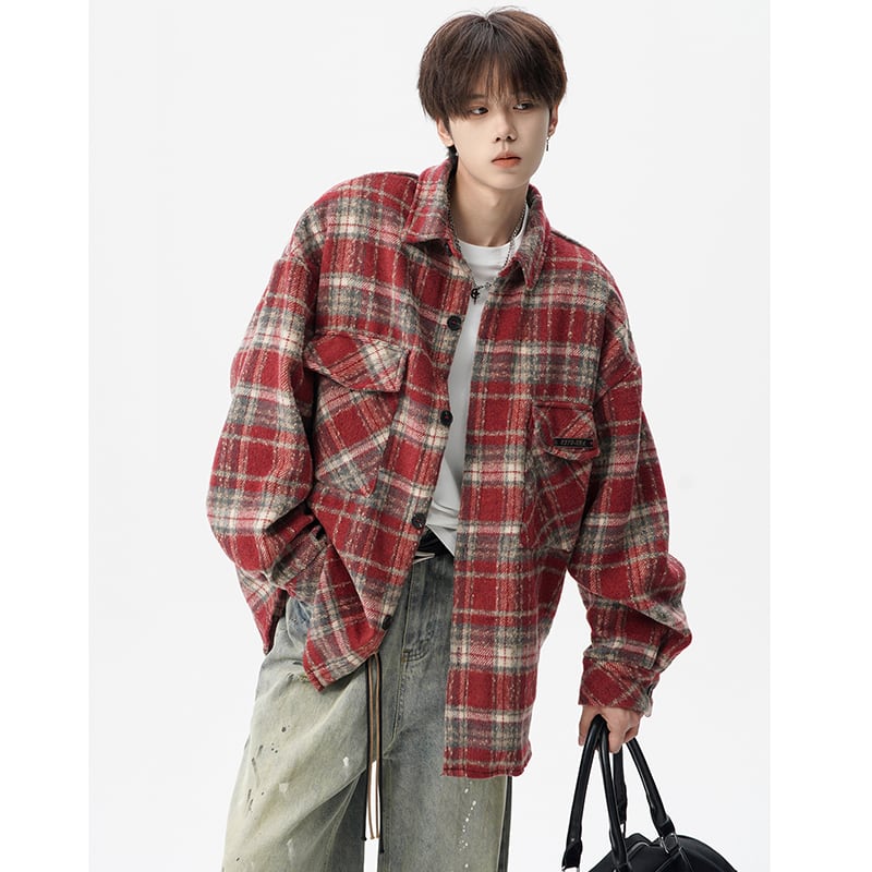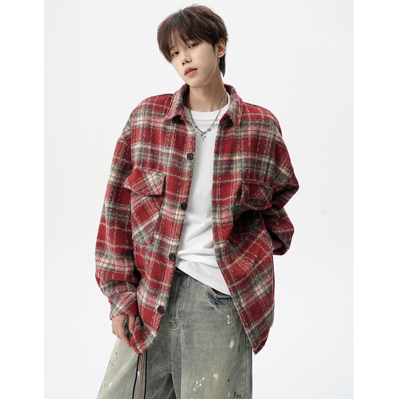 ✿秋冬の着回しカジュアルシャツ!【GraceRubシリーズ】★シャツ★ 男女兼用 2color トップス チェック柄 メンズ 大きいサイズ 赤 黒