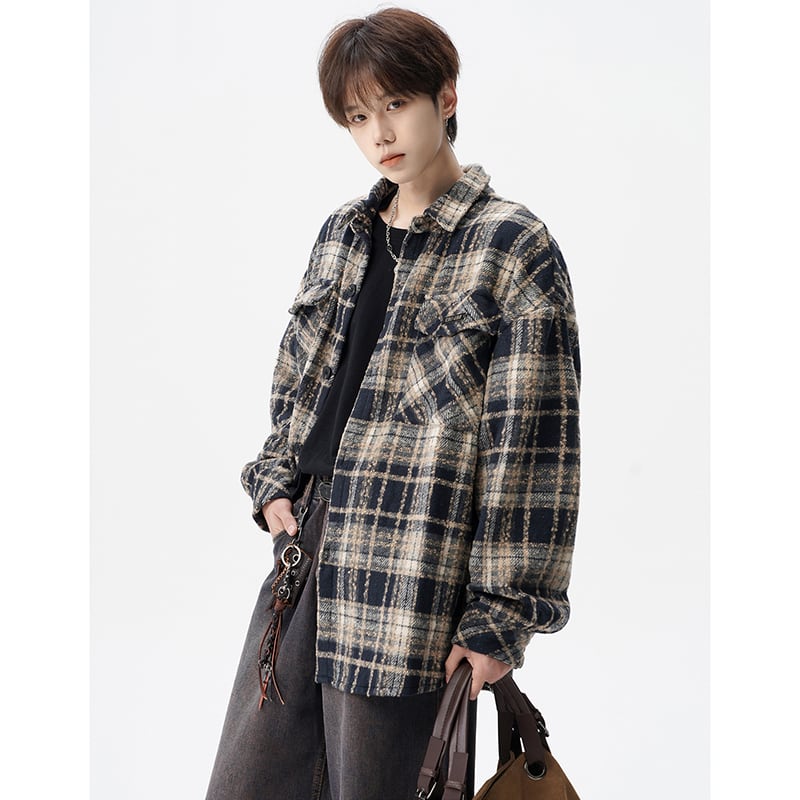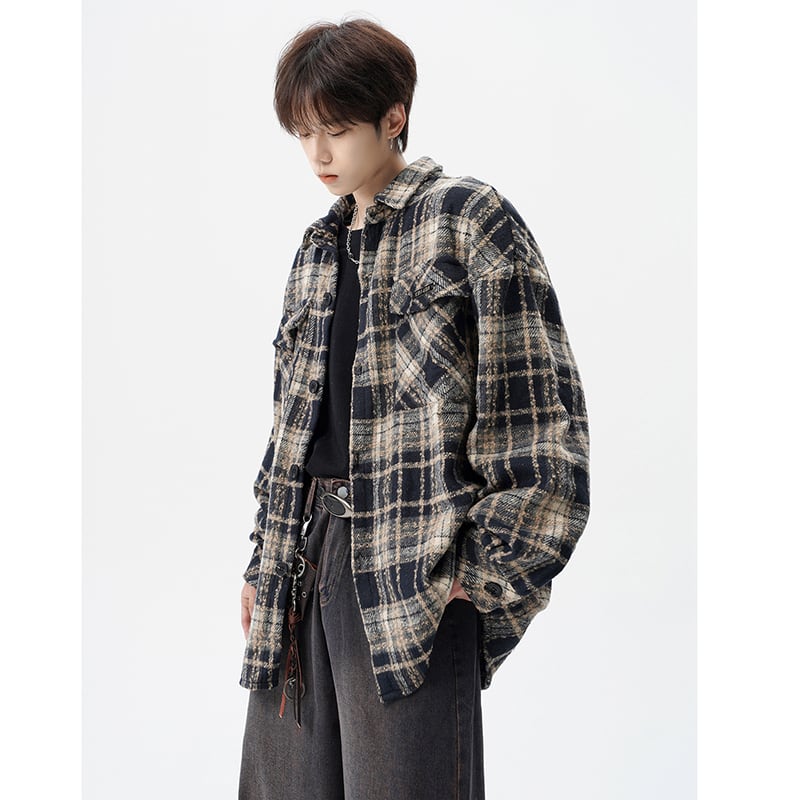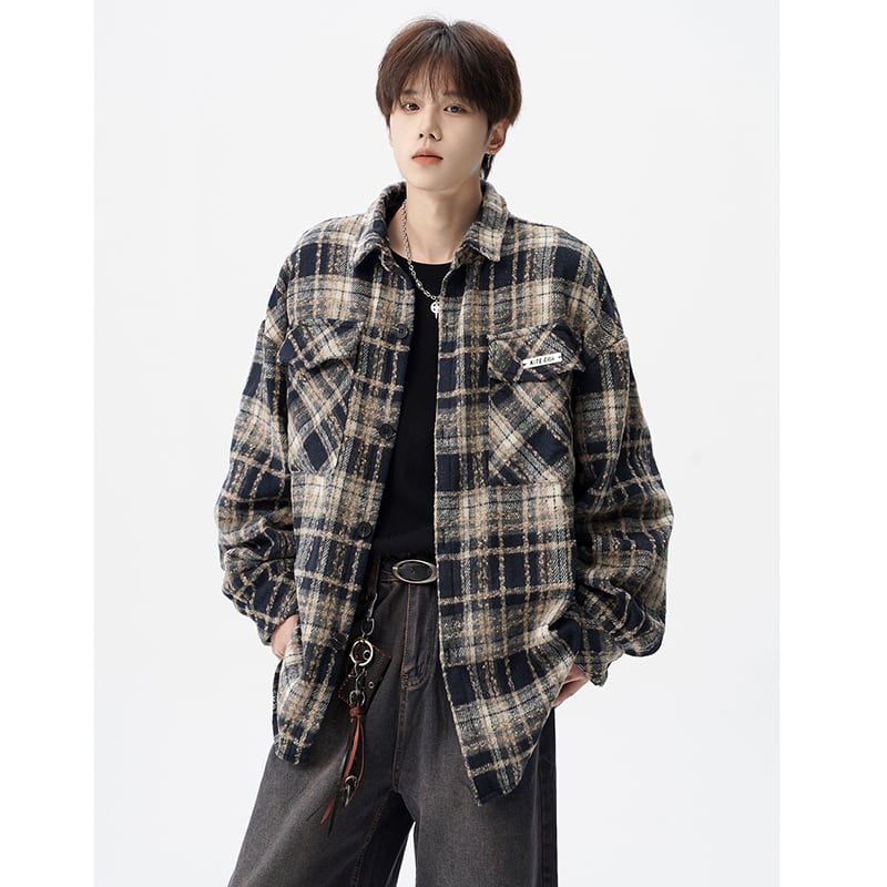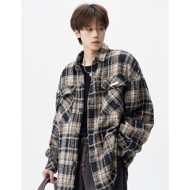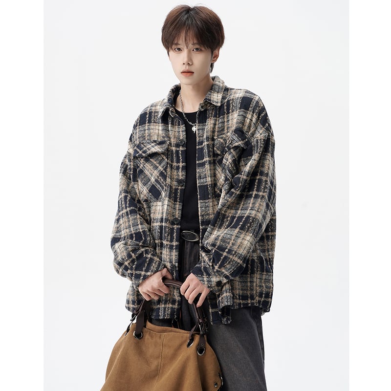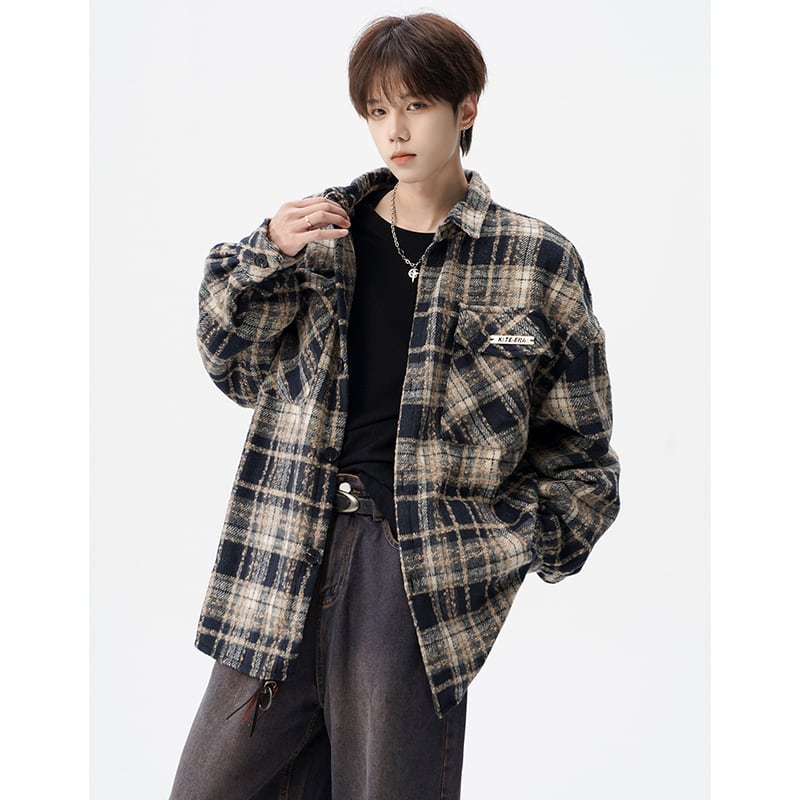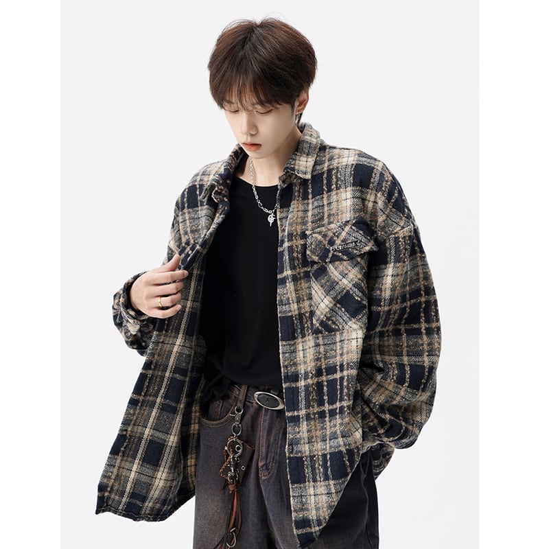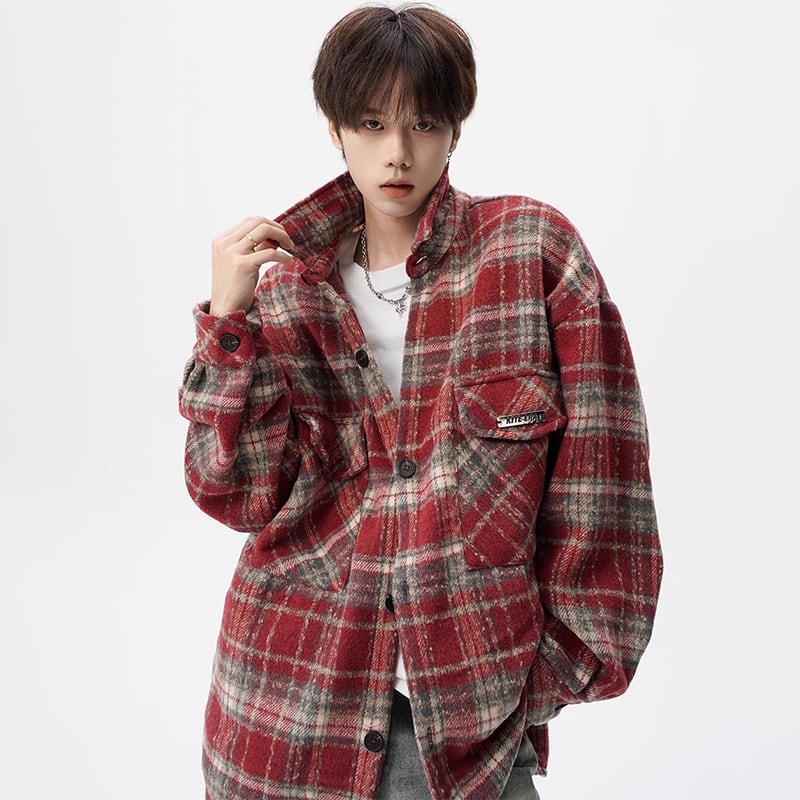 ✿秋冬の着回しカジュアルシャツ!【GraceRubシリーズ】★シャツ★ 男女兼用 2color トップス チェック柄 メンズ 大きいサイズ 赤 黒