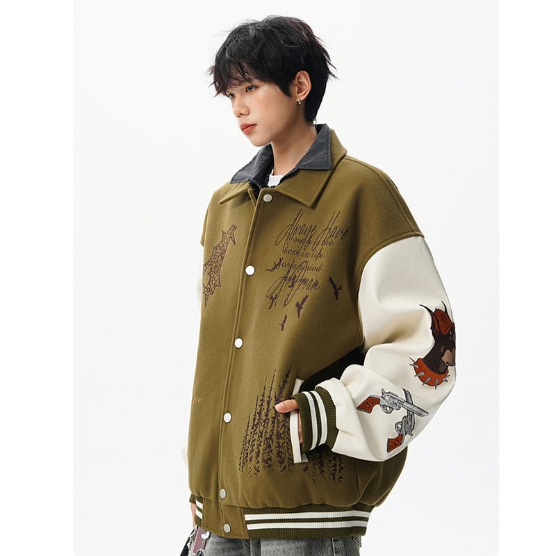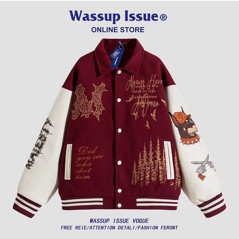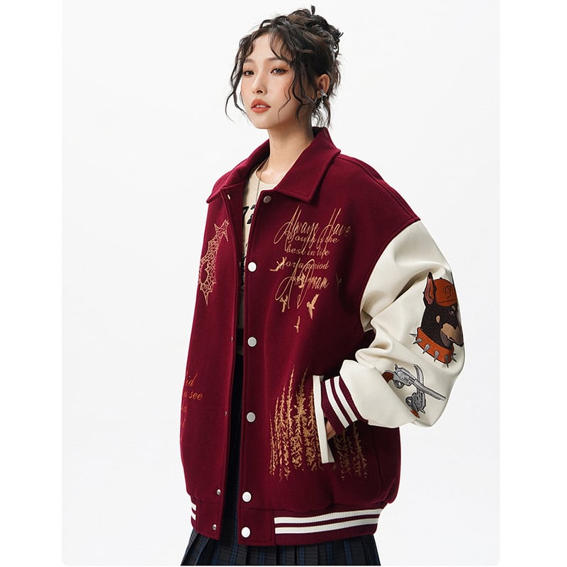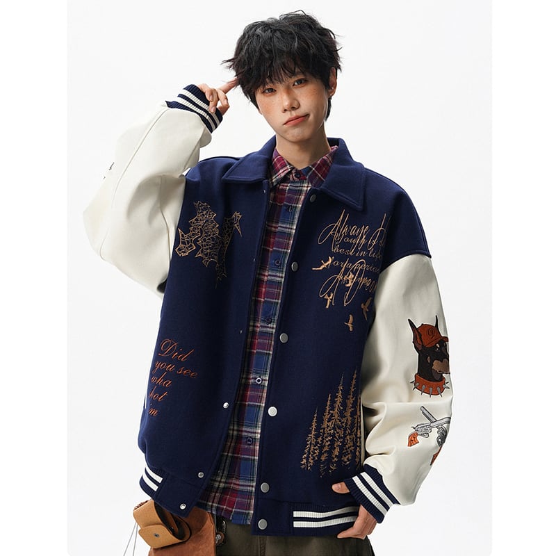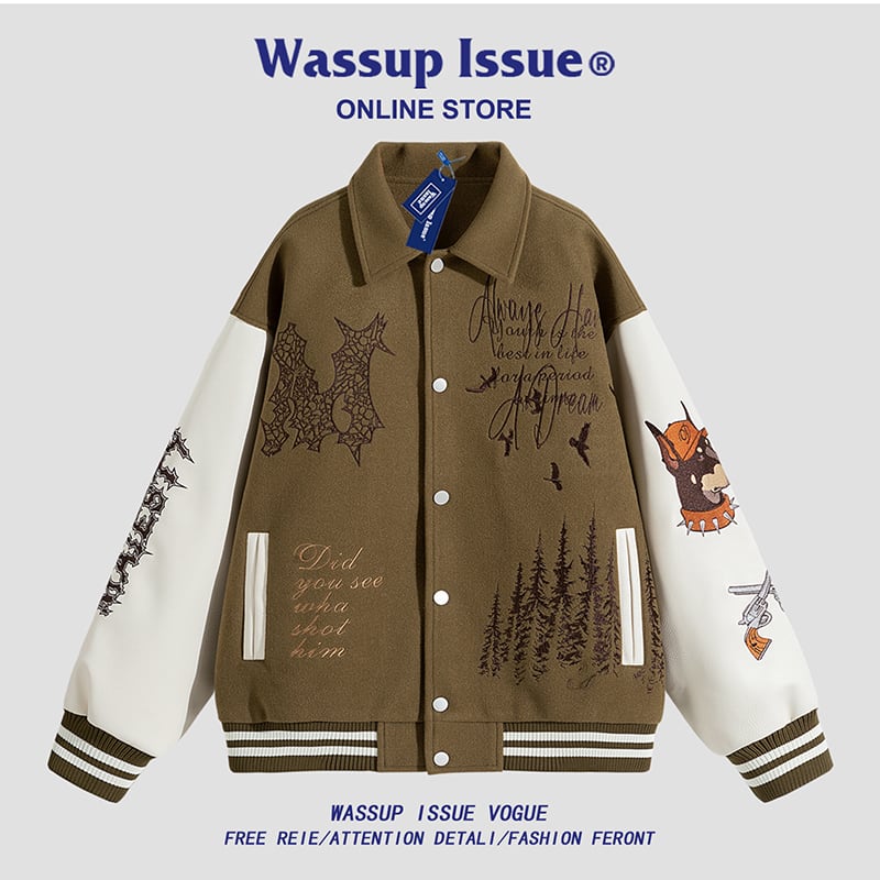 ✿アメリカンストリートの刺繍スタジャン!【WSシリーズ】★ジャケット★ 男女兼用 3color 犬 スカジャン アウター 切り替え