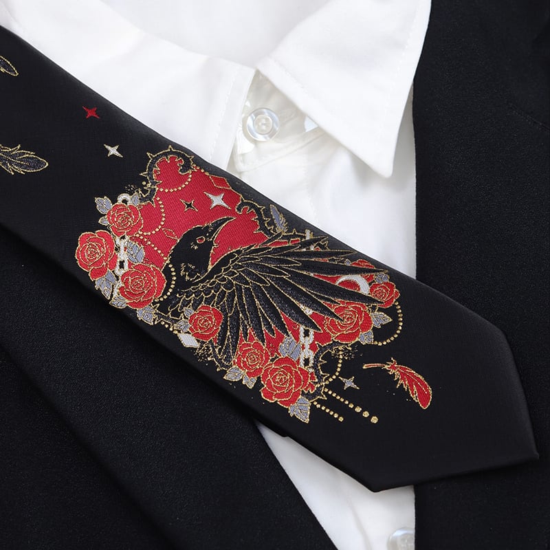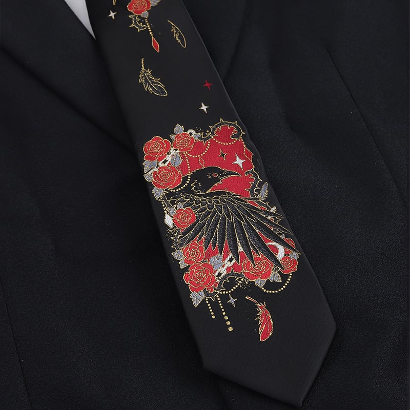 ❦薔薇と鴉のダークロマンネクタイ!【渡鸦シリーズ】★ネクタイ★ 男女兼用 花柄 小物 飾り物 メンズ