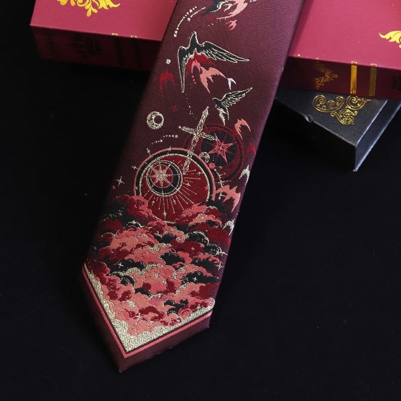 ❦配色の妙、妖しさ!【破晓シリーズ】★ネクタイ★ 男女兼用 花柄 小物 飾り物 メンズ 黒+紫