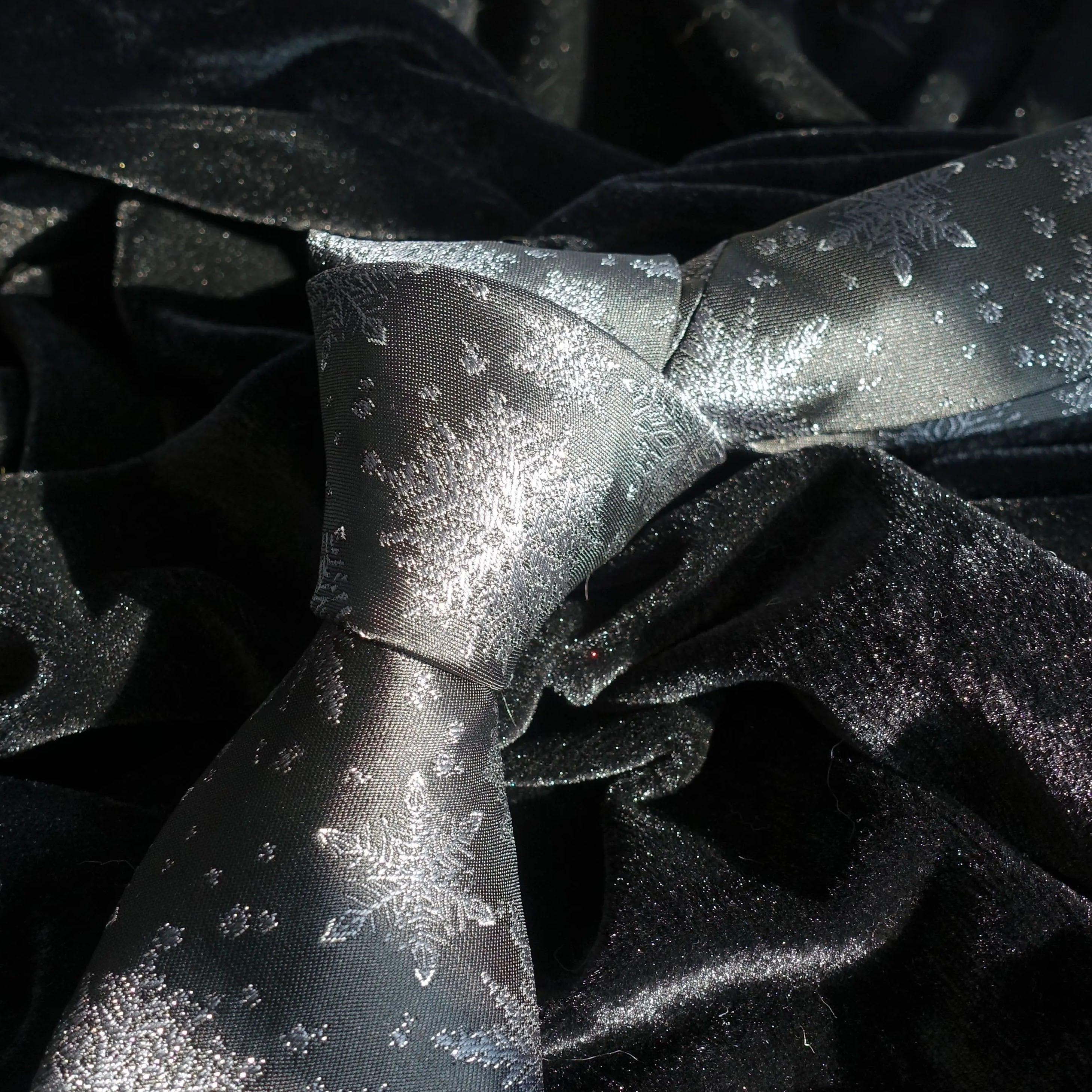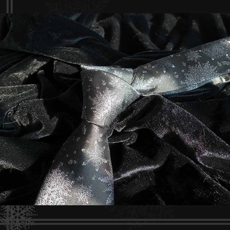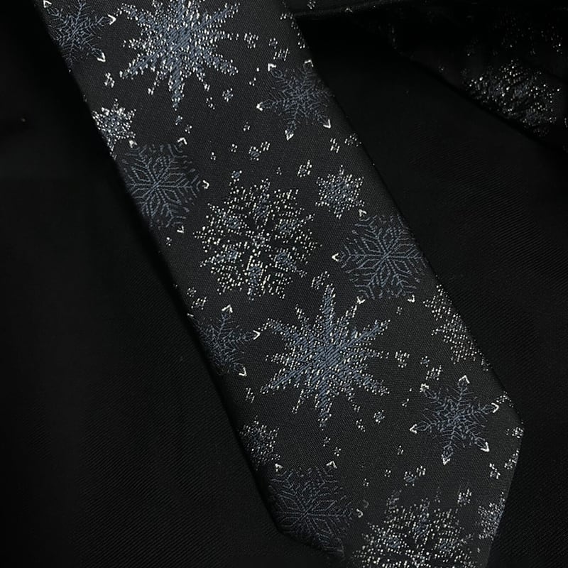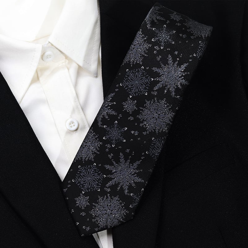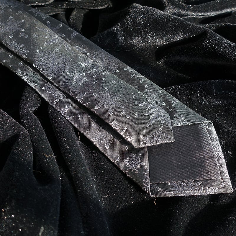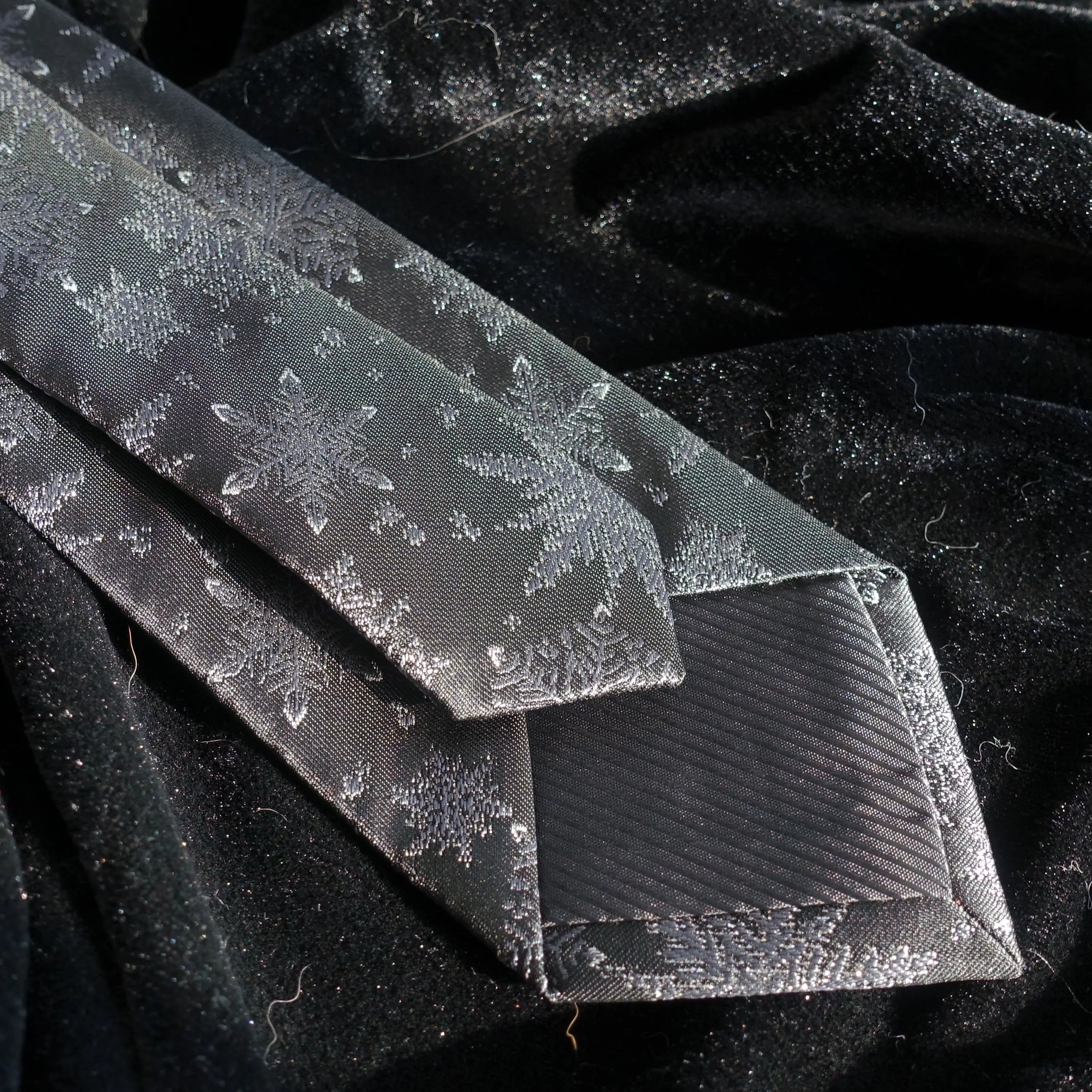 ❦雪の花モチーフネクタイ!【雪绒绒シリーズ】★ネクタイ★ 男女兼用 花柄 小物 飾り物 メンズ ブラック