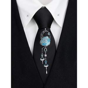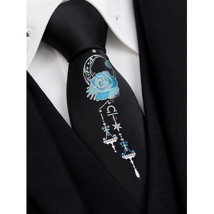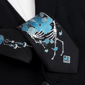 ❦青い薔薇と骸骨の幻想!【司衡シリーズ】★ネクタイ★ 男女兼用 小物 飾り物 メンズ ブラック 黒