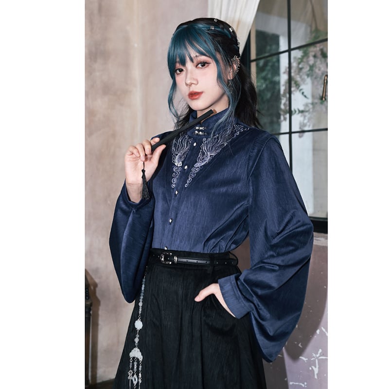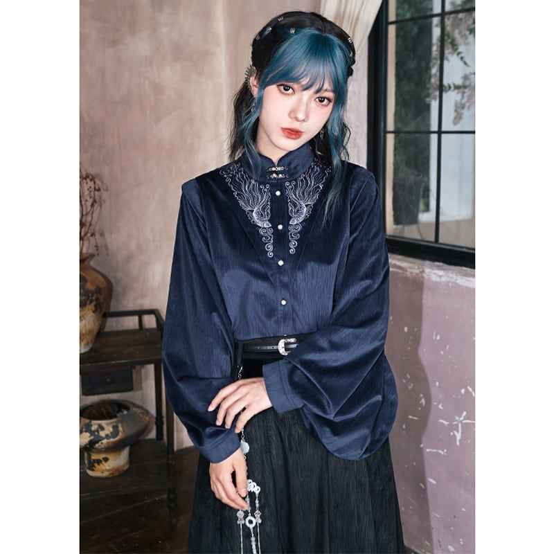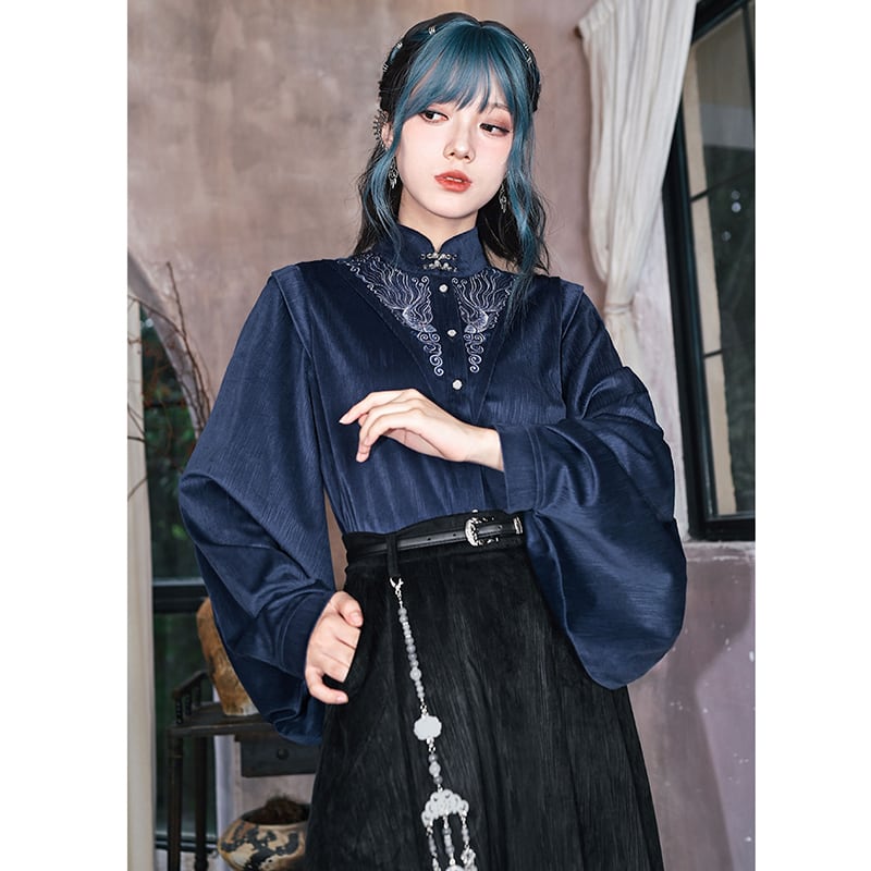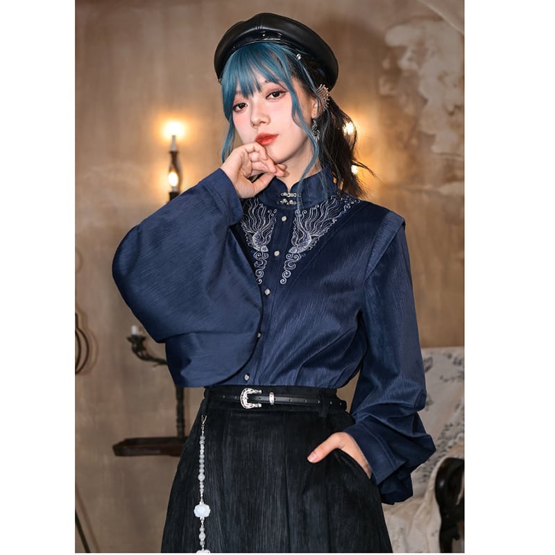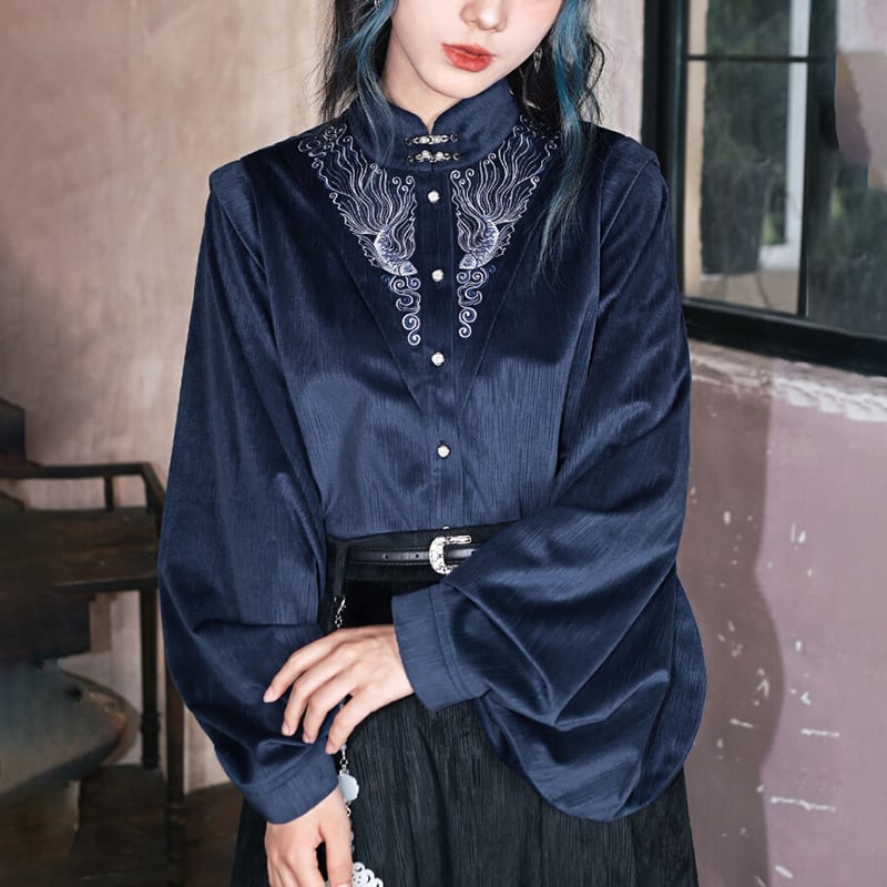 ♬モダン中華モード!【古怪舍---浮光鰭夢シリーズ】★チャイナ風トップス★ 刺繍 秋冬シャツ シャツ 中華服 長袖