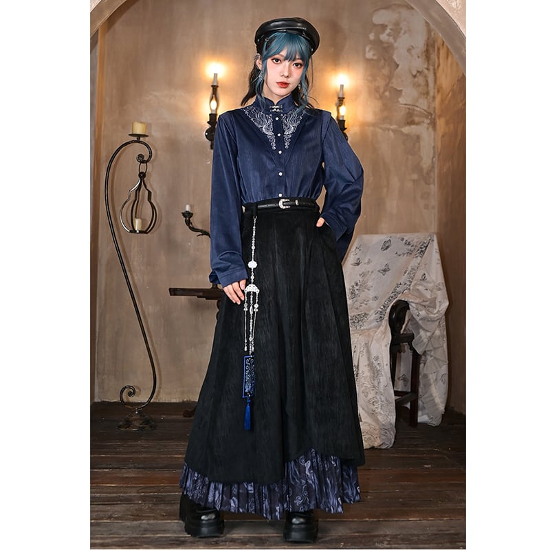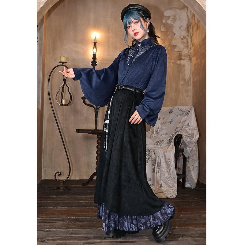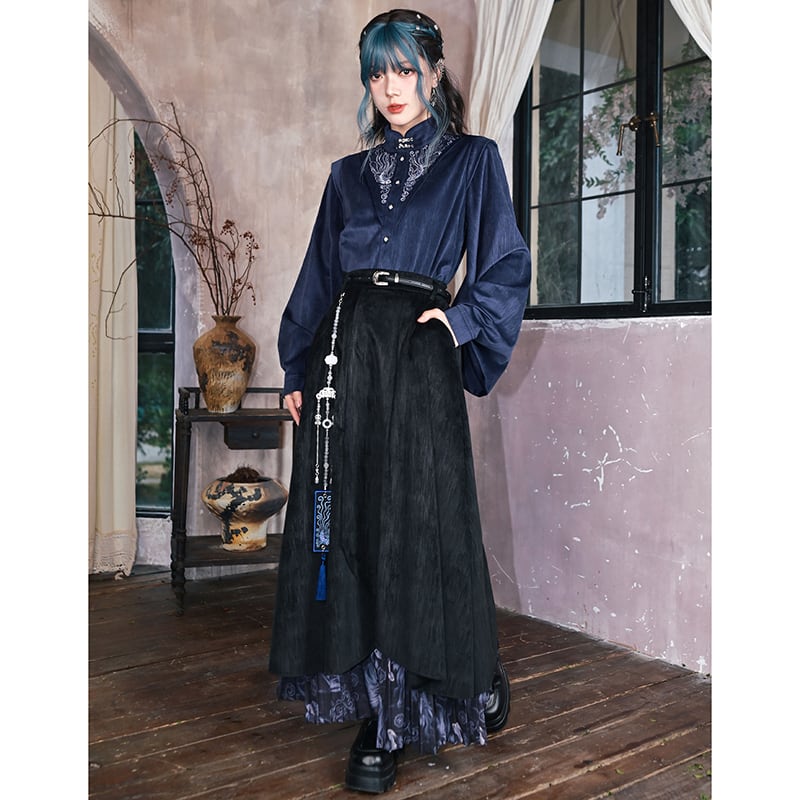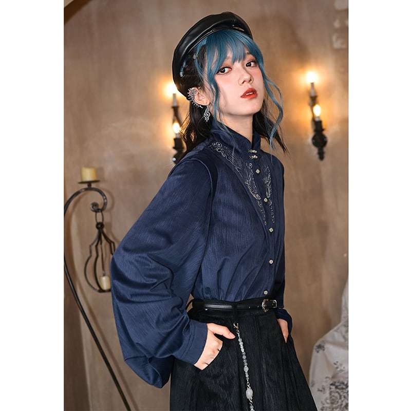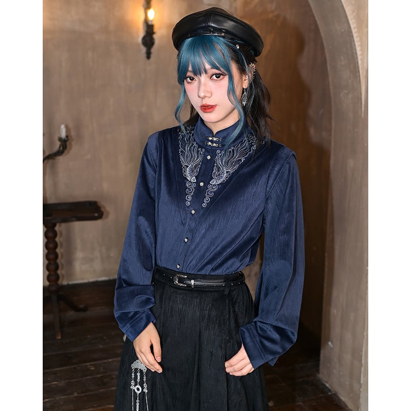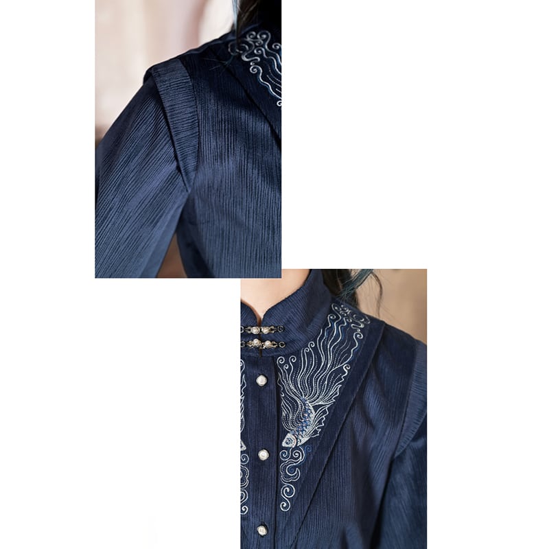 ♬モダン中華モード!【古怪舍---浮光鰭夢シリーズ】★チャイナ風トップス★ 刺繍 秋冬シャツ シャツ 中華服 長袖