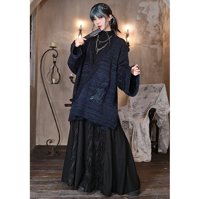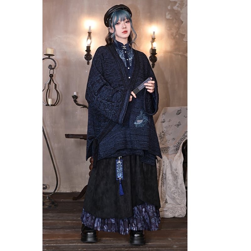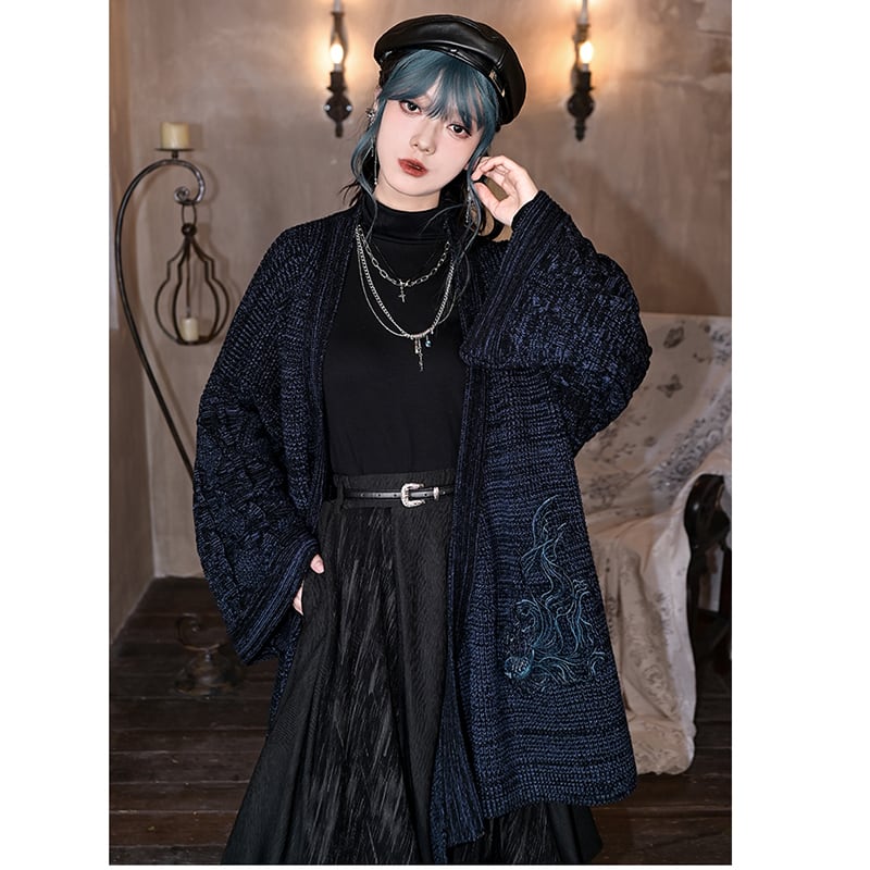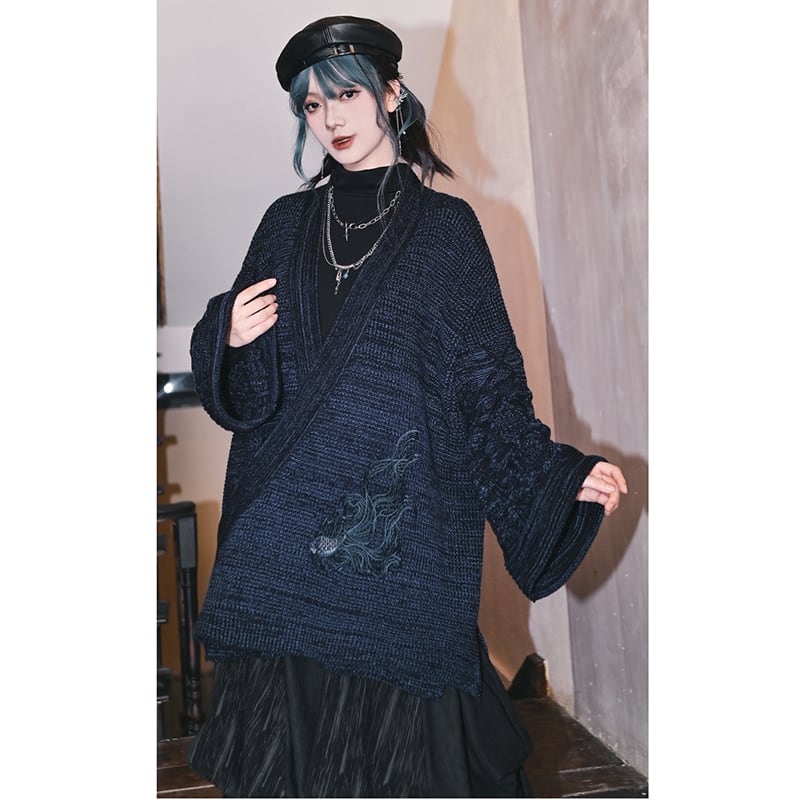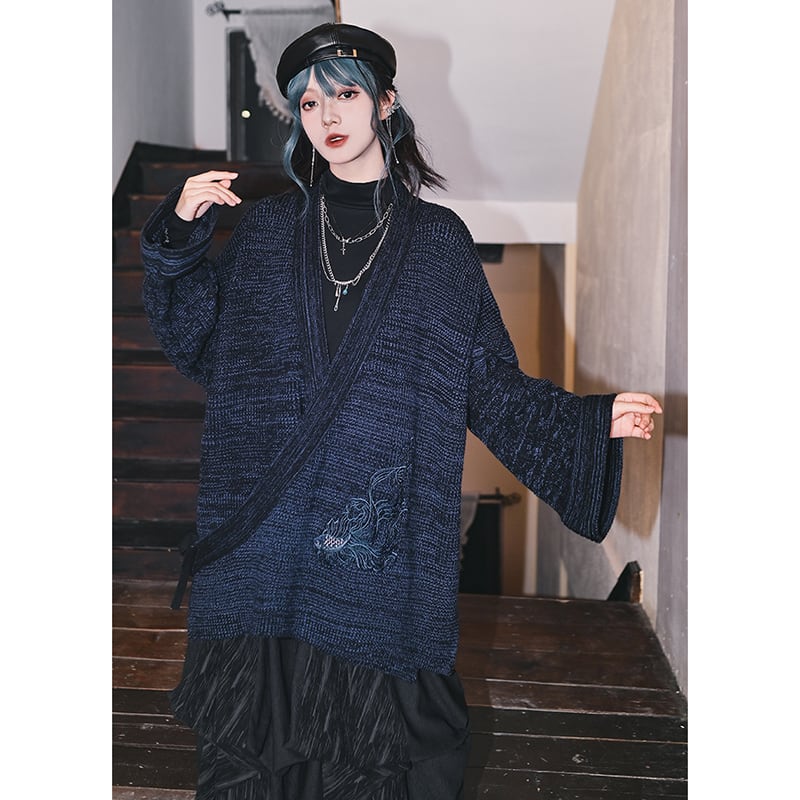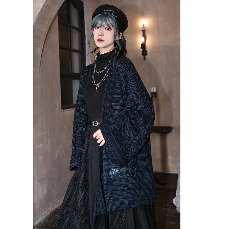 ♬モダン魚刺繍チャイナカーディガン!【古怪舍---浮光鰭夢シリーズ】★チャイナ風アウター★ レトロ セーター ニット