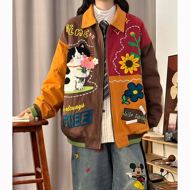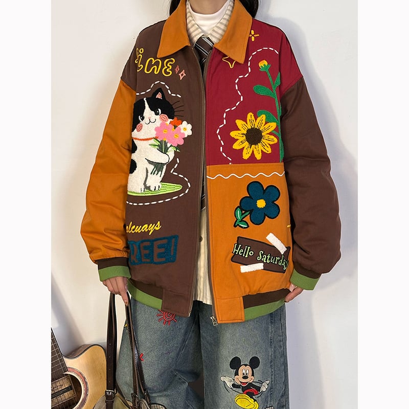 ▼遊び心のあったかコート!【UATONLINEシリーズ】★冬用コート★ 猫 ユニセックス 彩り 綿入れコート