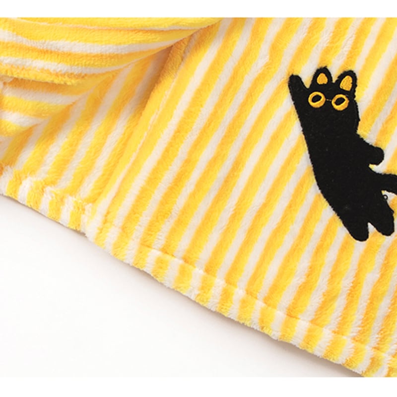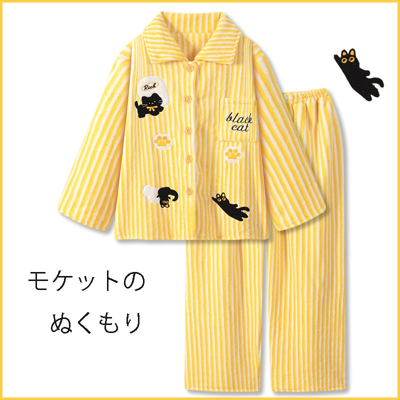 ✿冬のあったか猫ちゃん時間!【RUANHUHUシリーズ】★パジャマ★ モケット 2点セット 縦縞 トップス+ズボン レディース 部屋着 ルームウェア