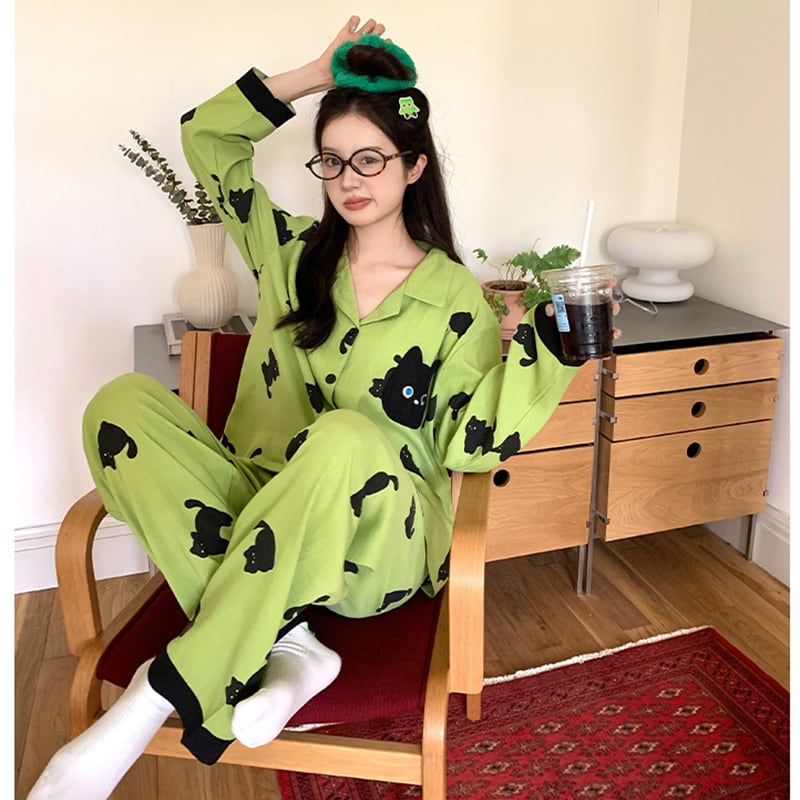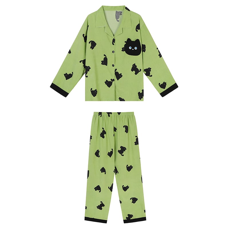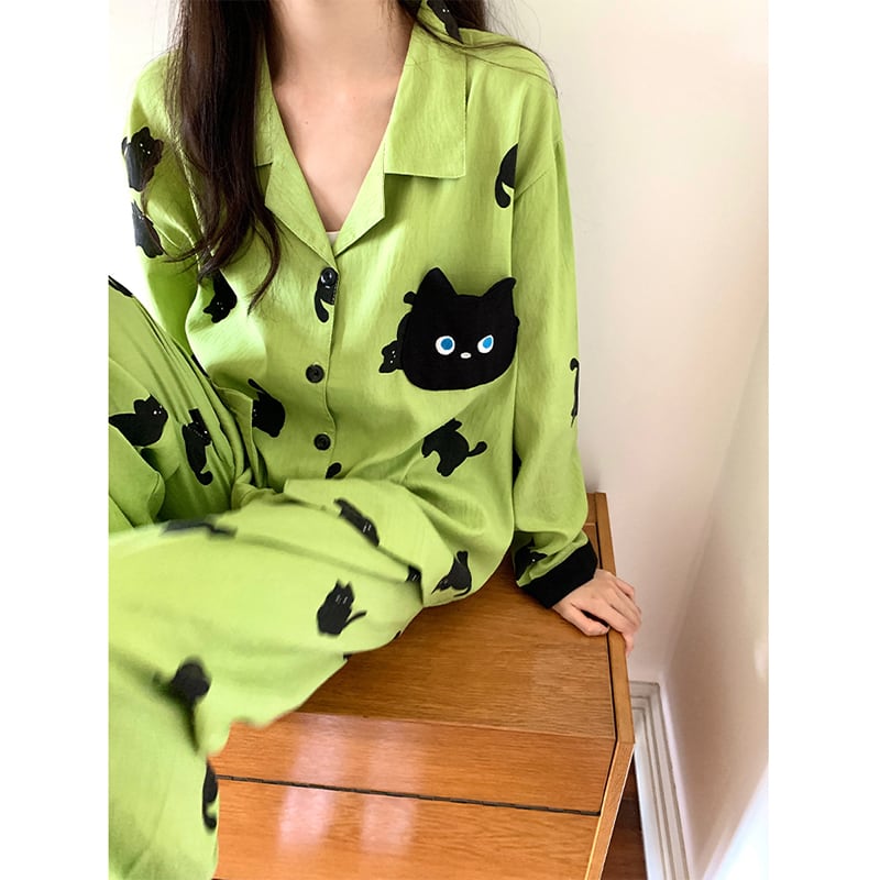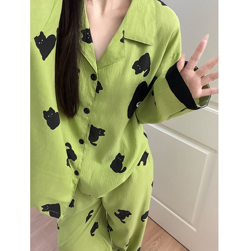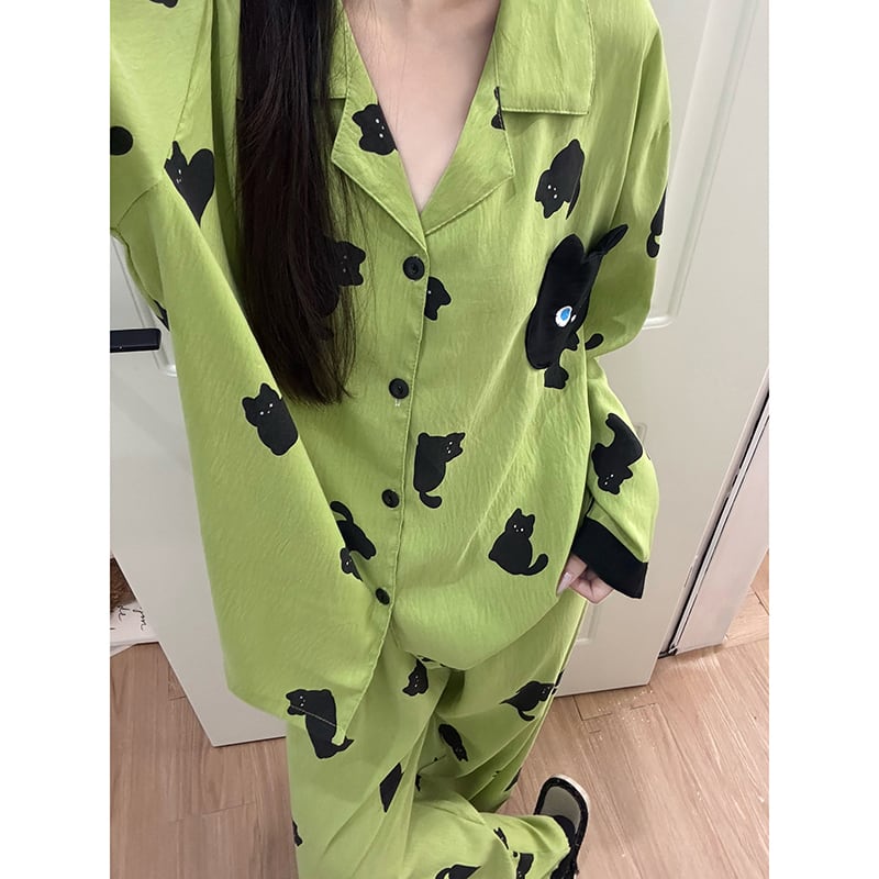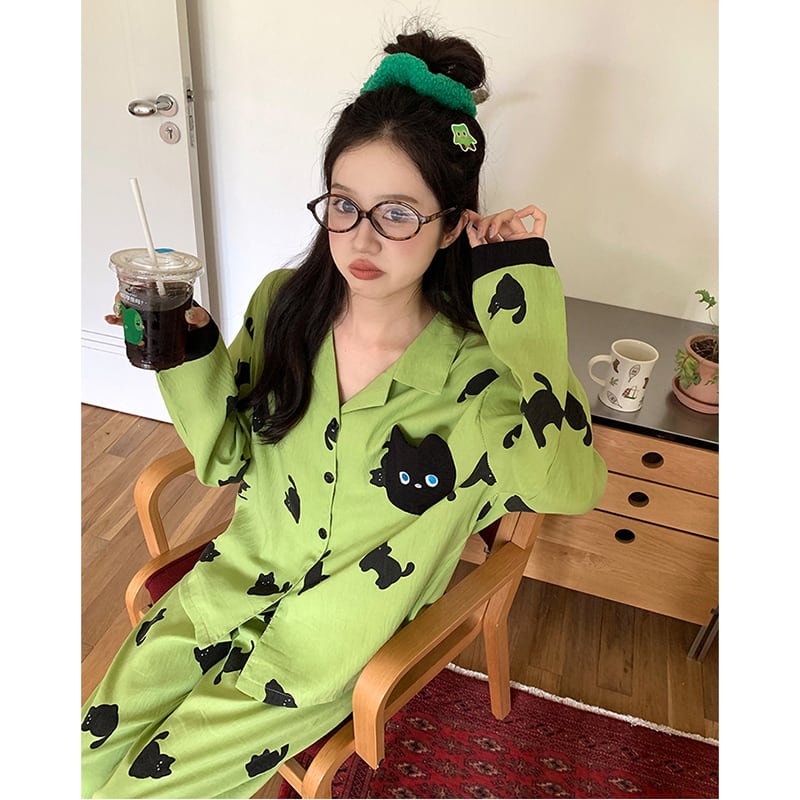 ✿黒猫のプチおしゃれ!【FANXIシリーズ】★パジャマ★ パット付き 2点セット トップス+ズボン レディース 部屋着 ルームウェア