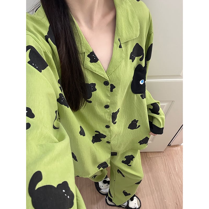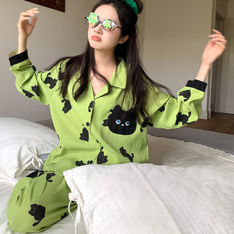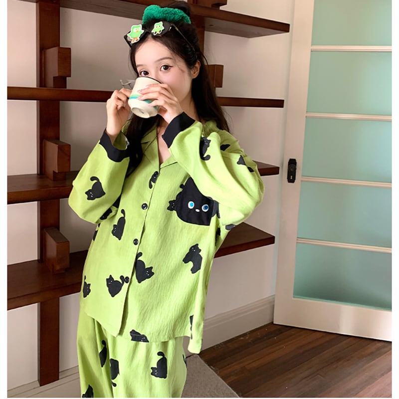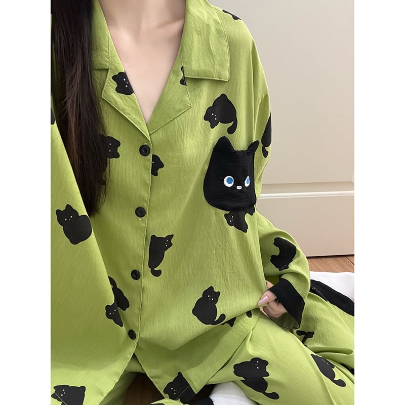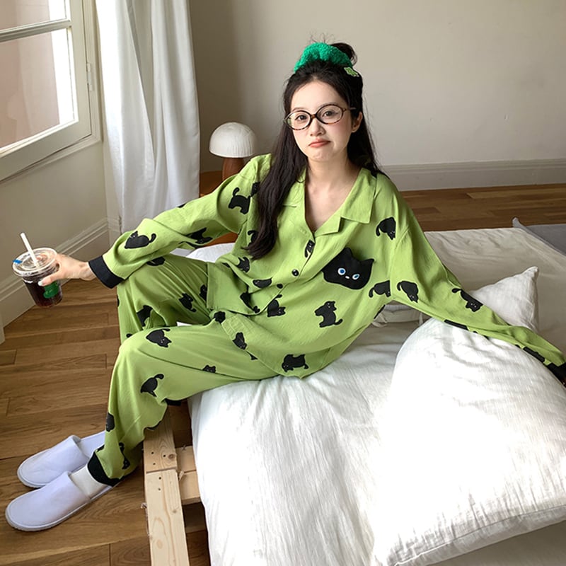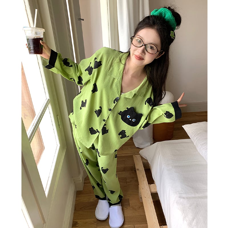 ✿黒猫のプチおしゃれ!【FANXIシリーズ】★パジャマ★ パット付き 2点セット トップス+ズボン レディース 部屋着 ルームウェア