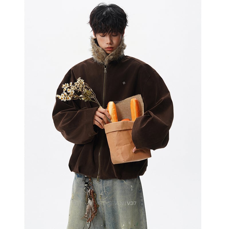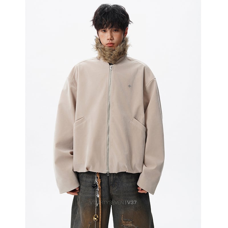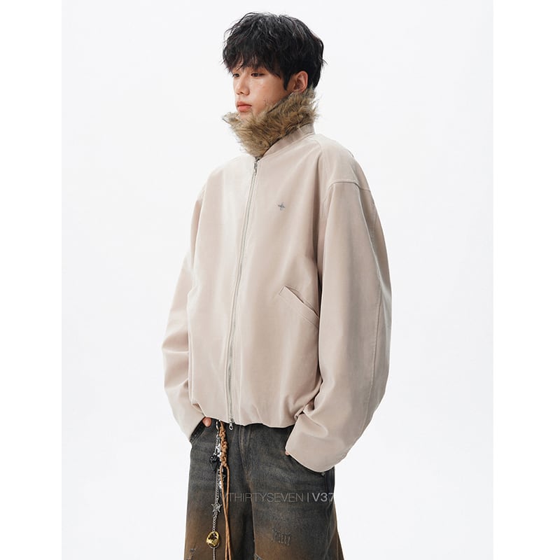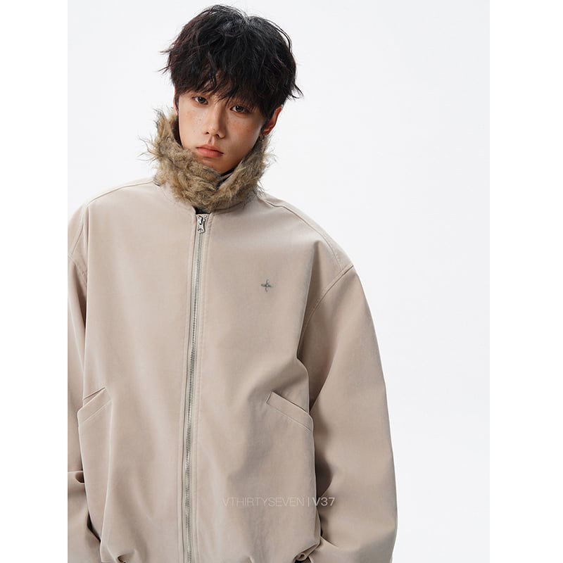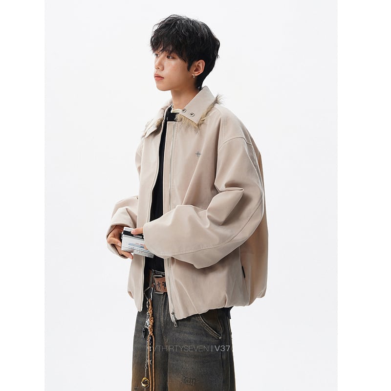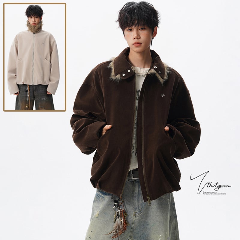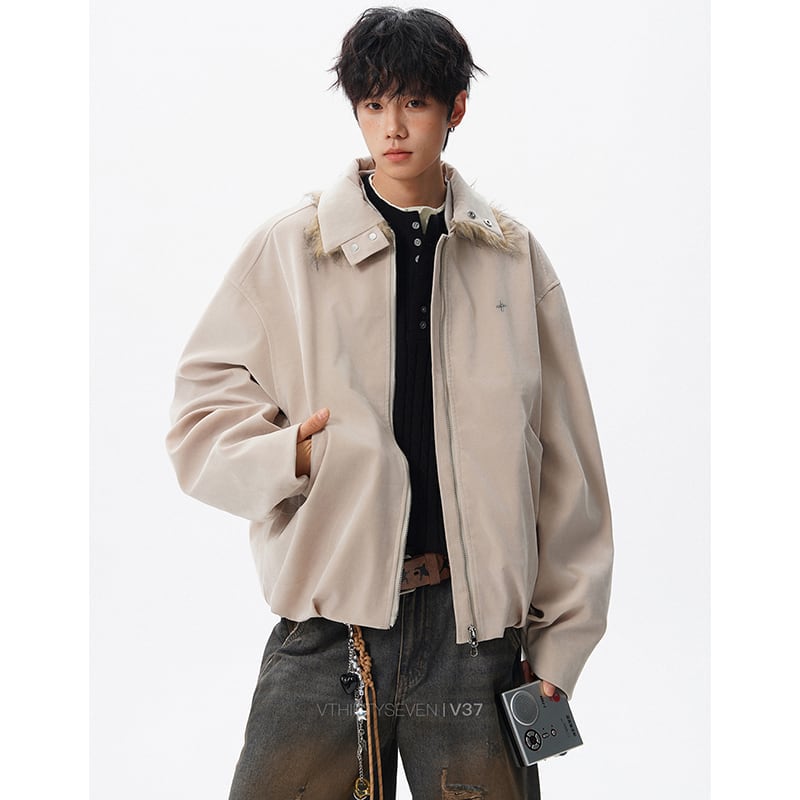 ∮ファー取り外し可能レトロジャケット!【V37シリーズ】★ジャケット★ ユニセックス 2color アウター