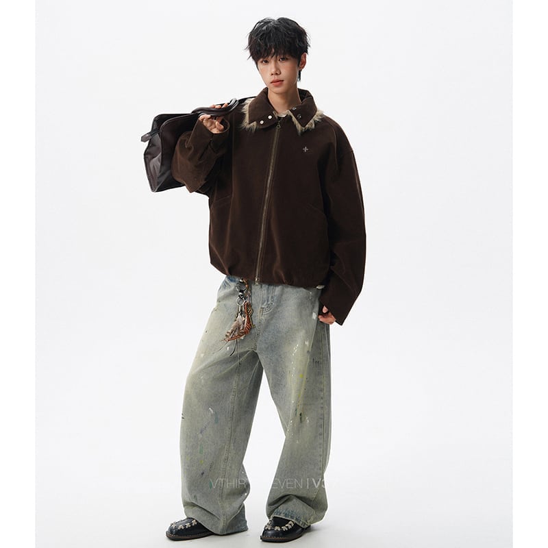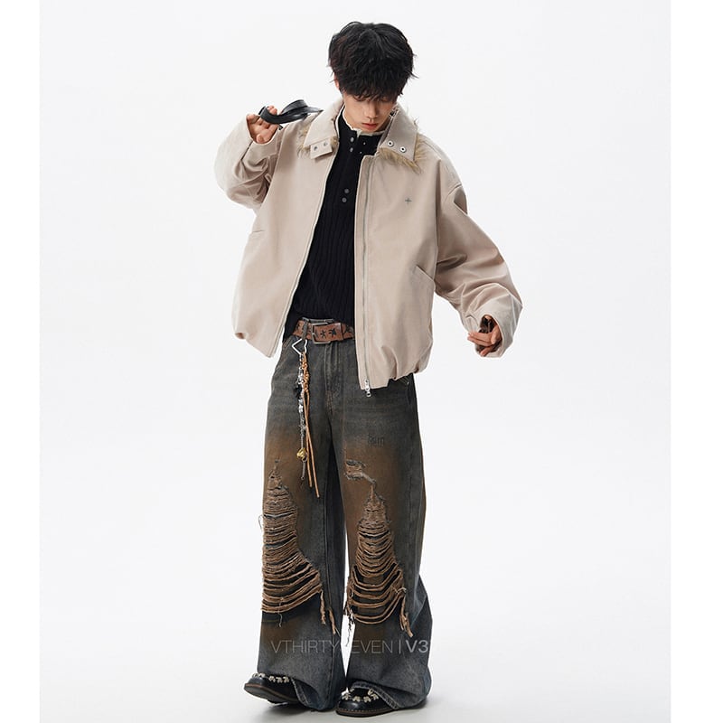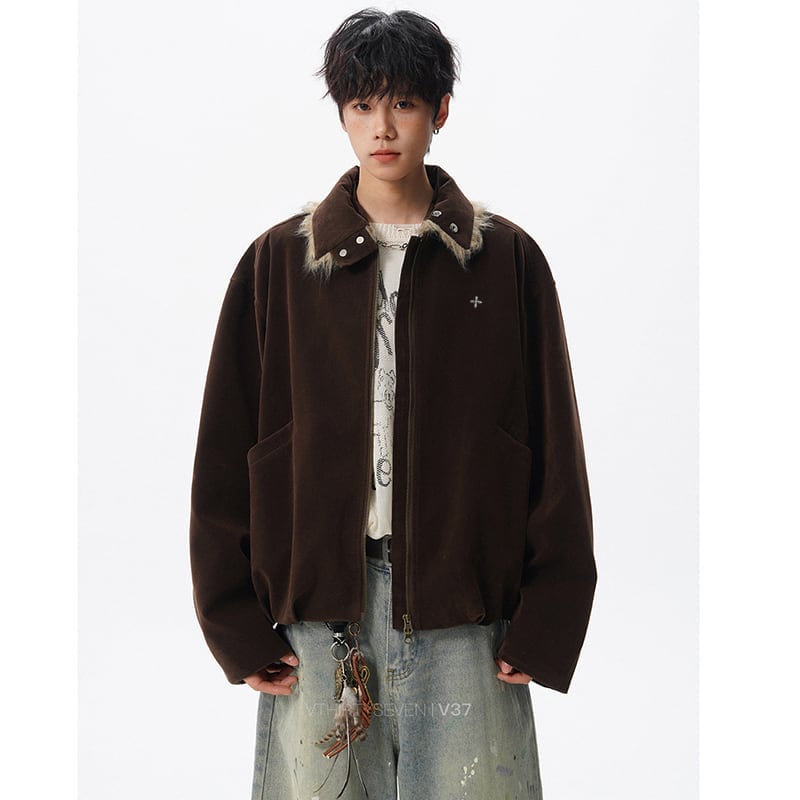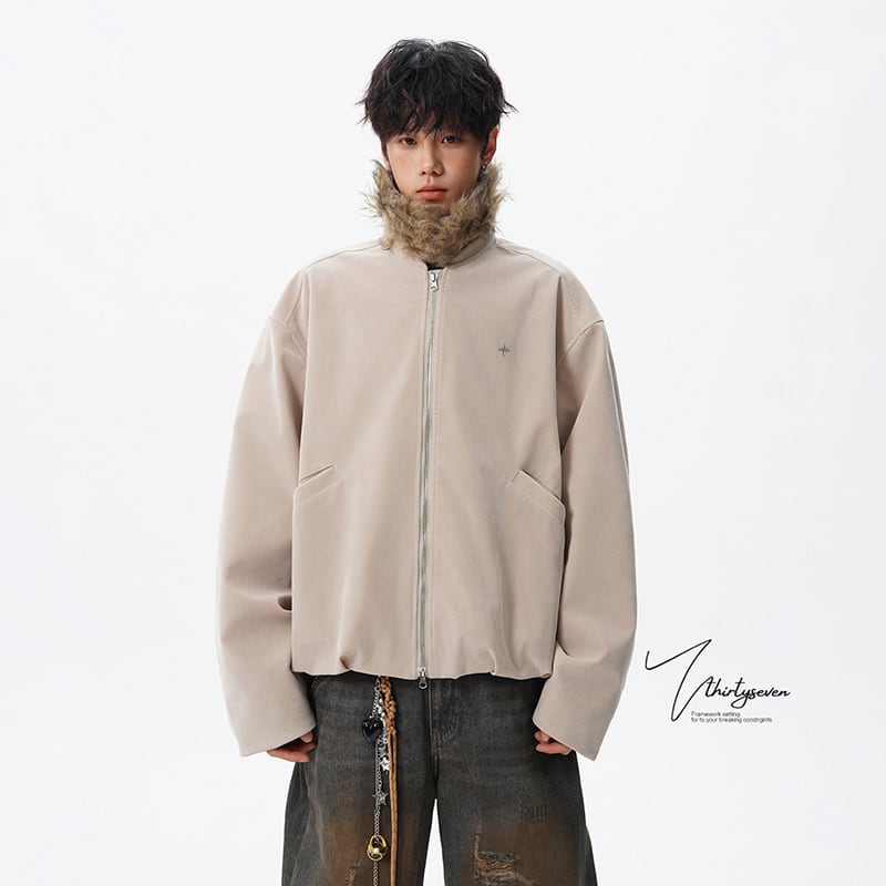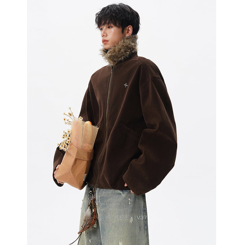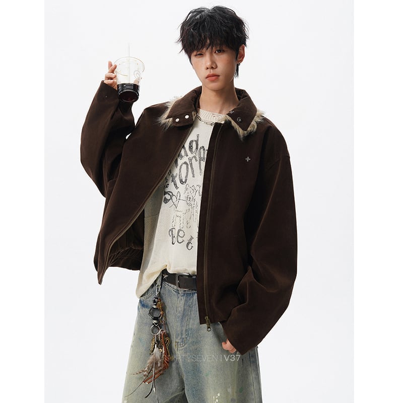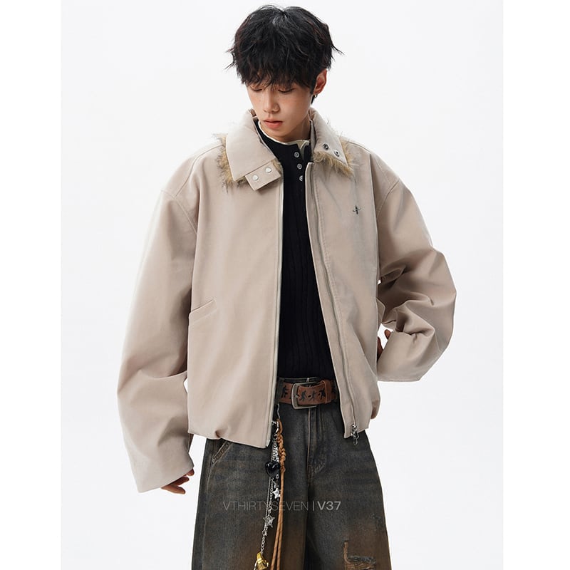 ∮ファー取り外し可能レトロジャケット!【V37シリーズ】★ジャケット★ ユニセックス 2color アウター