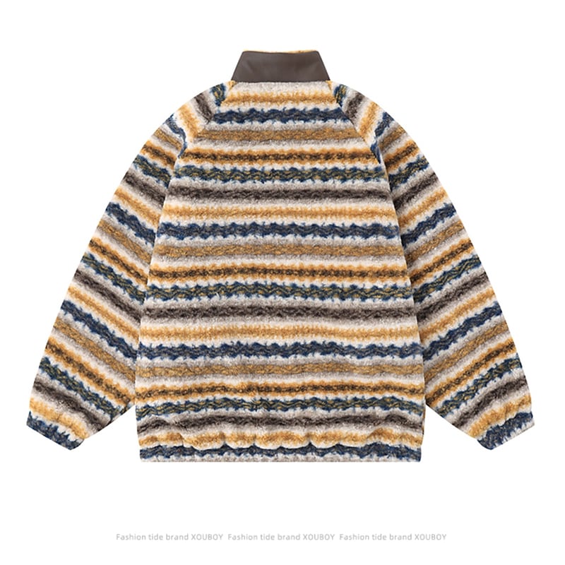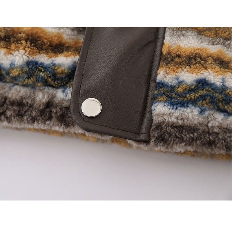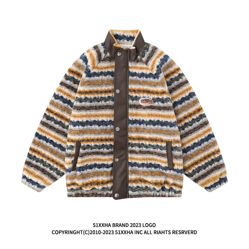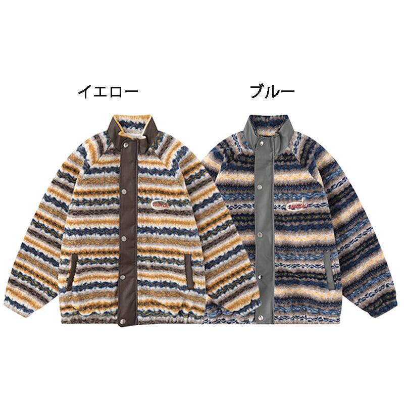 ✿エスニック風綿入れコート!【逃離地球シリーズ】★冬用コート★ ユニセックス 2color スタンドネック 横縞 配色