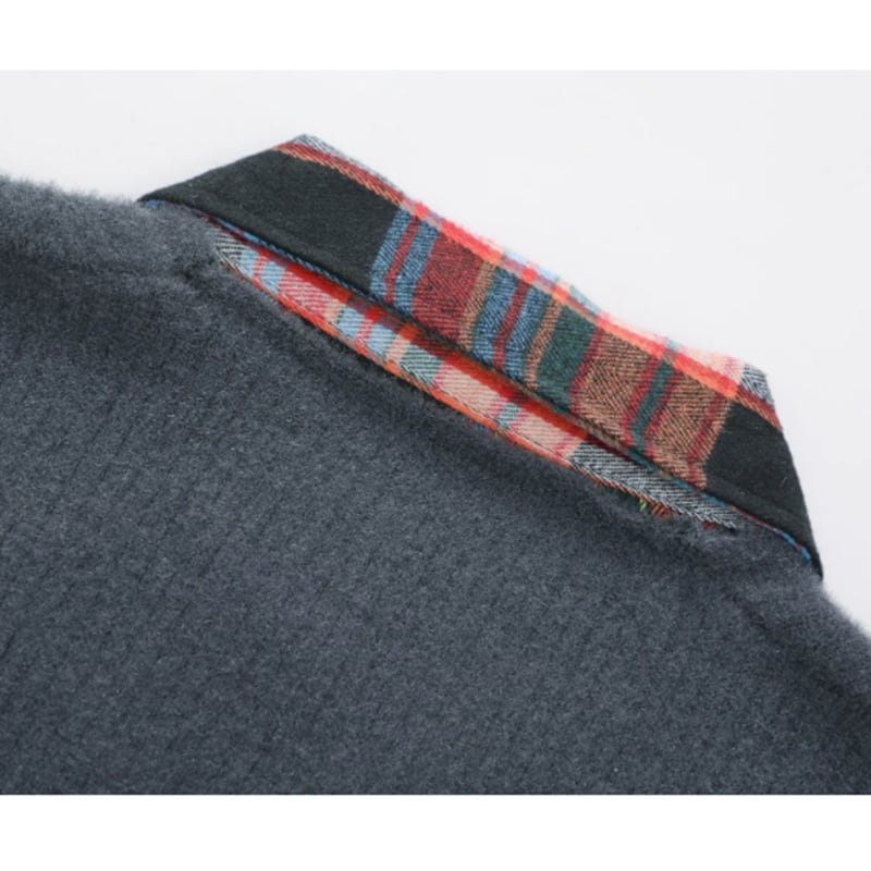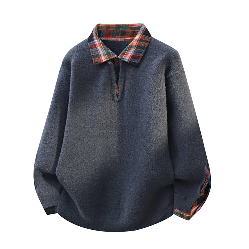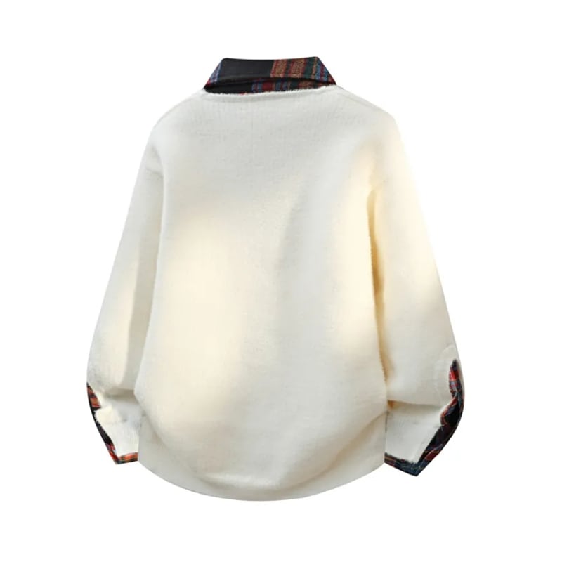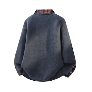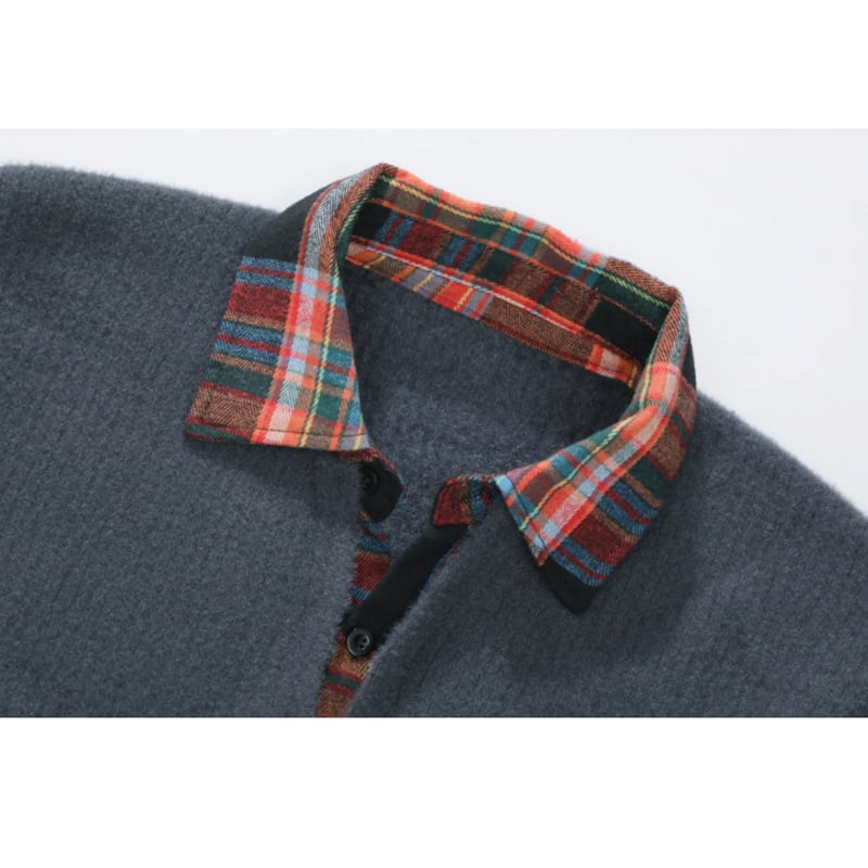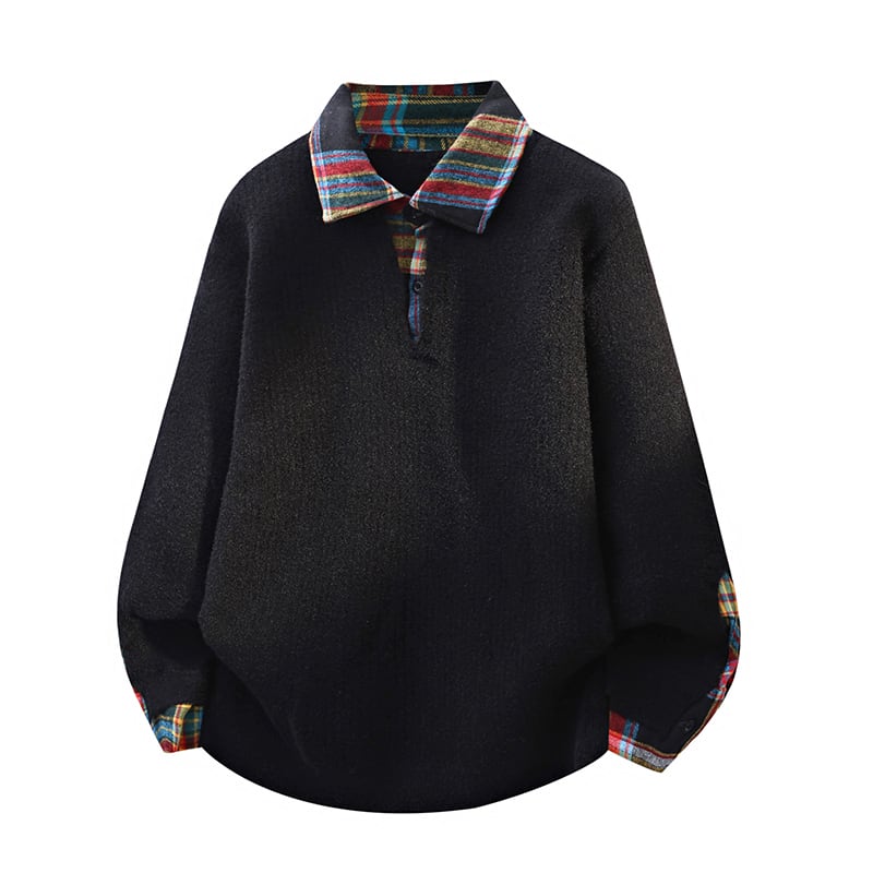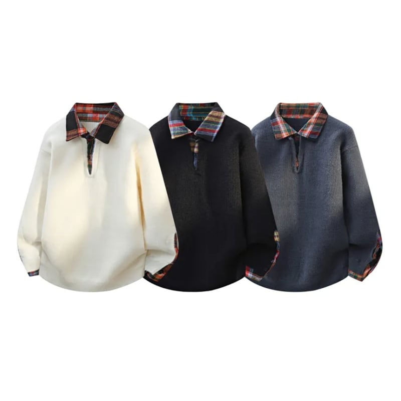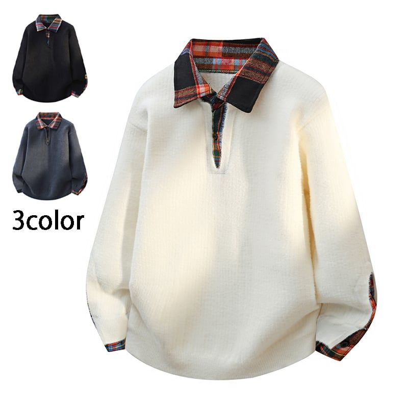 ৡ切り替えPOLOネックニット!【WSシリーズ】★セーター★ ユニセックス 3color ニットトップス チェック柄 フェイクレイヤード