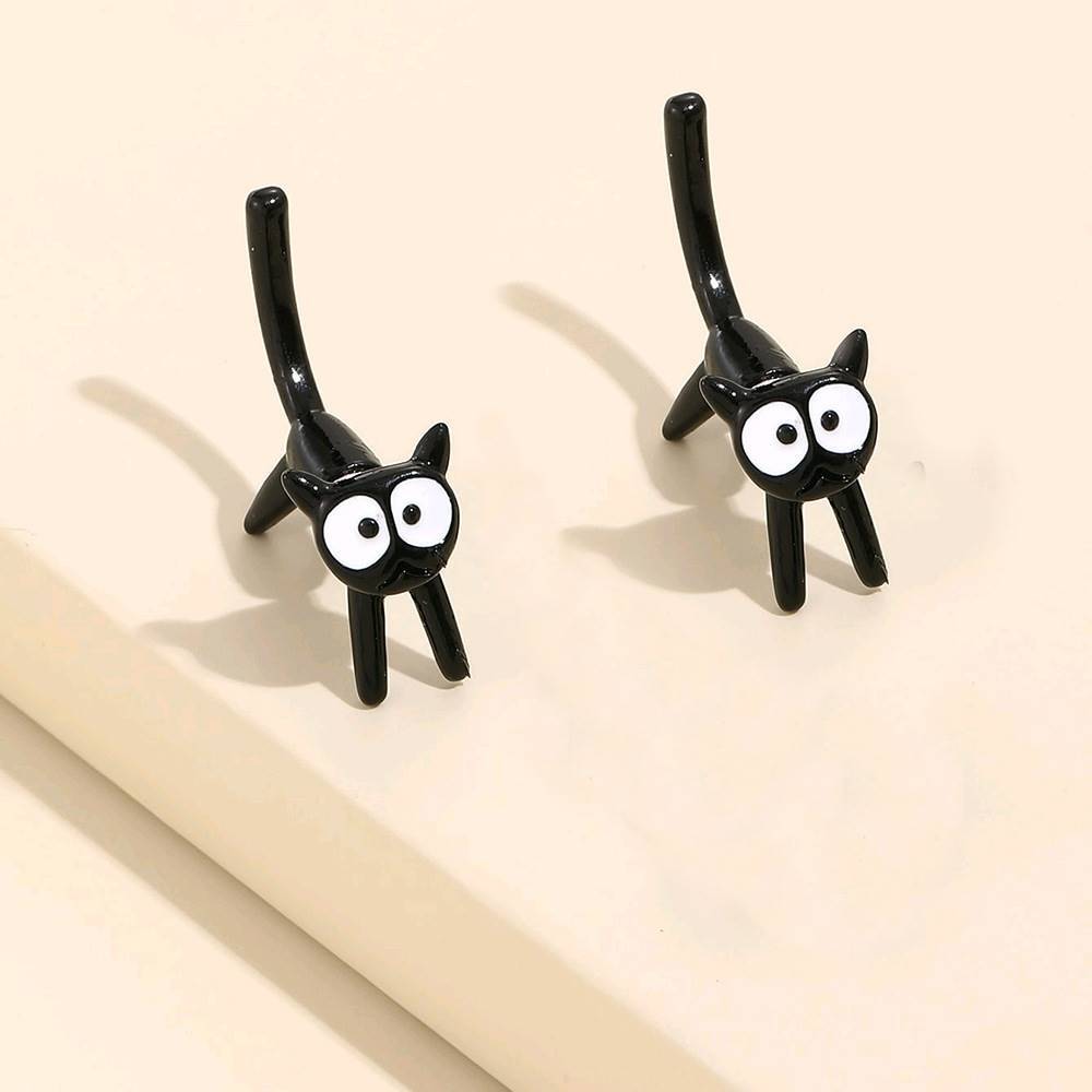 ♥黒猫のささやき!【CDSシリーズ】★耳飾り★ ピアス ペア 猫 ねこ ネコ アクセサリー レディース 黒 可愛い