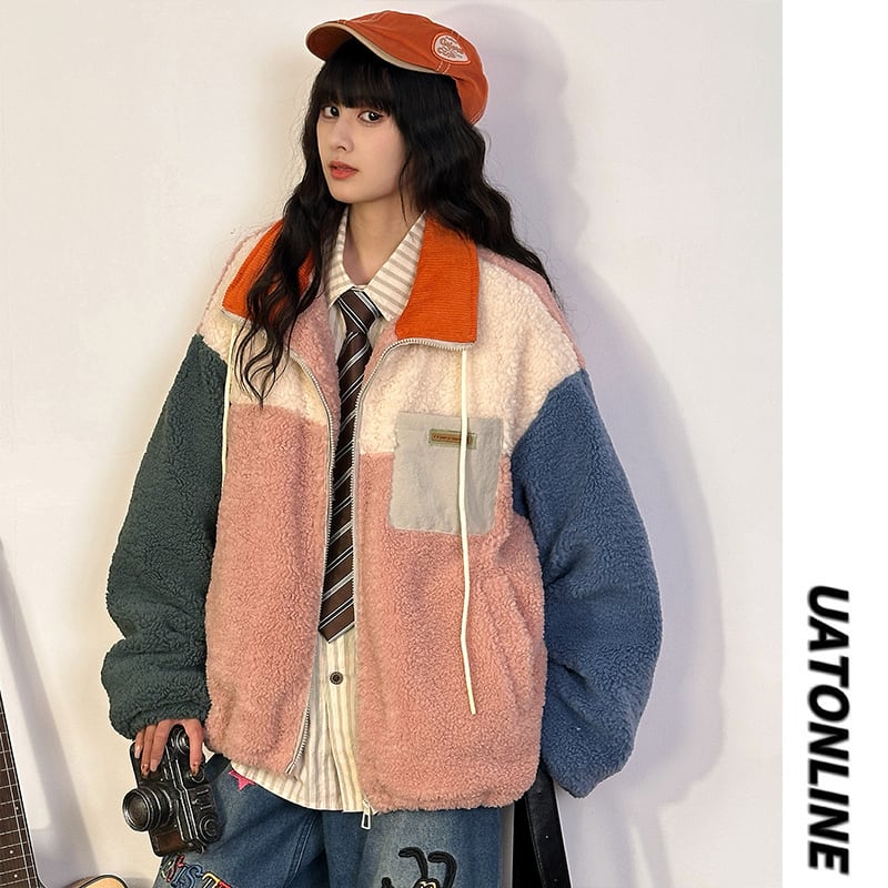 ♥配色のレトロなあたたかさ!【UATONLINEシリーズ】★冬用コート★ ユニセックス 綿入れコート スタンドネック