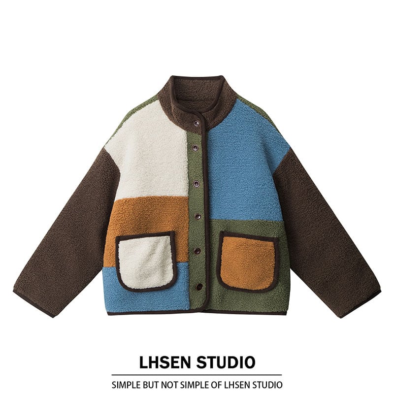 ♥こだわりの配色アート!【LHSENシリーズ】★冬用コート★ 綿入れコート スタンドネック アウター おしゃれ