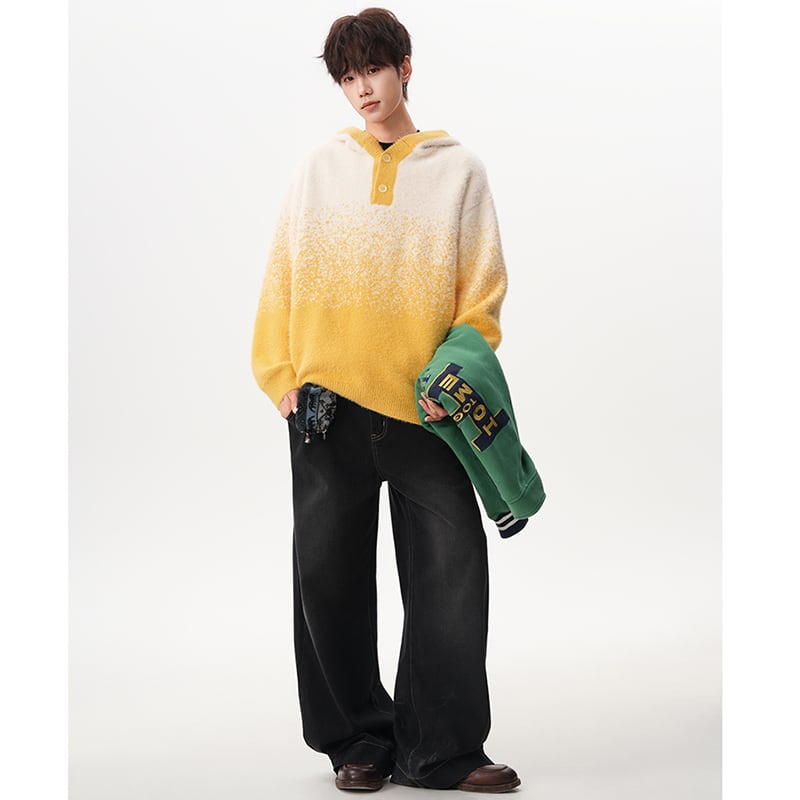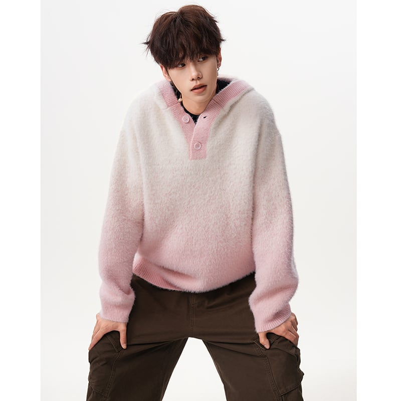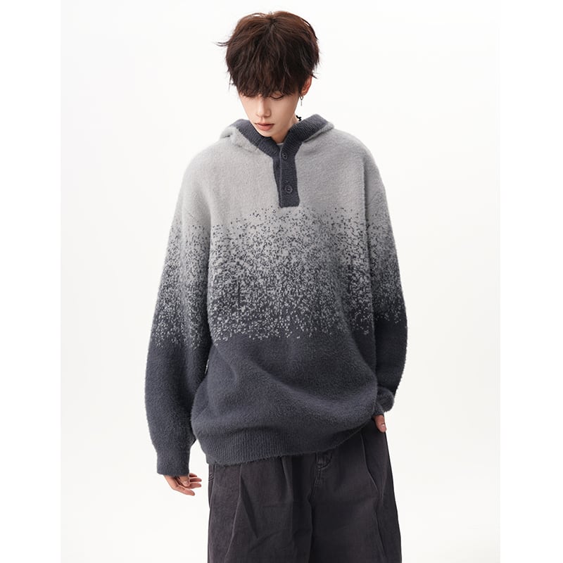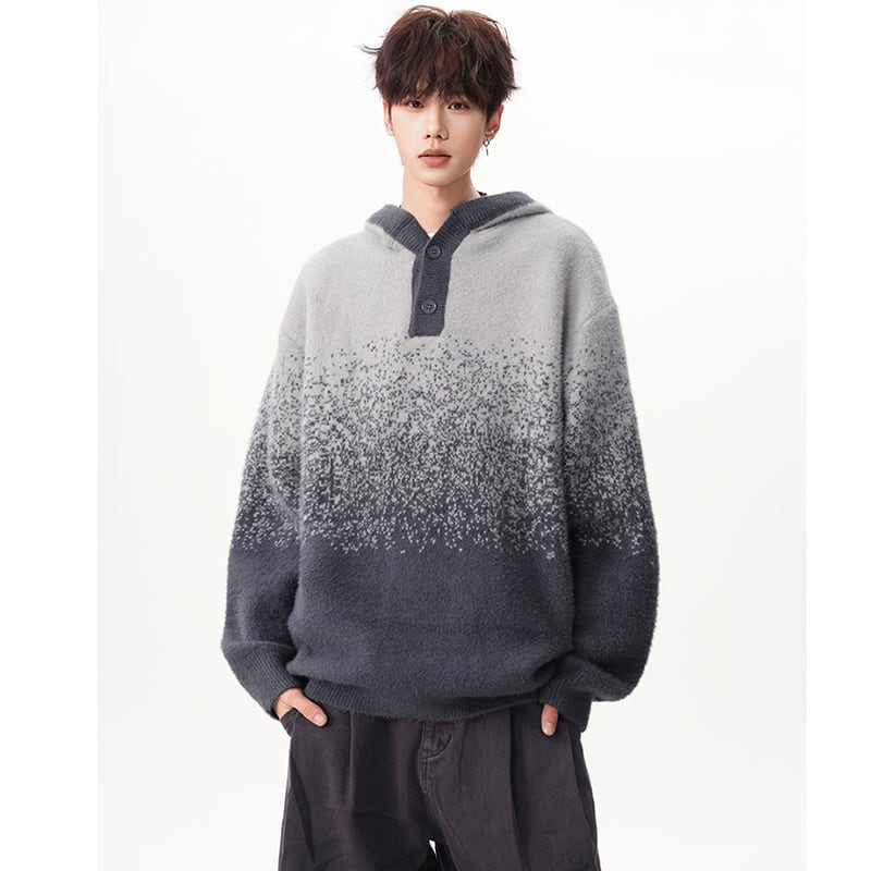 ☃ボタンがアクセントのグラデーションニット!【Qotriockシリーズ】★セーター★ ユニセックス 3color ニットトップス パーカー