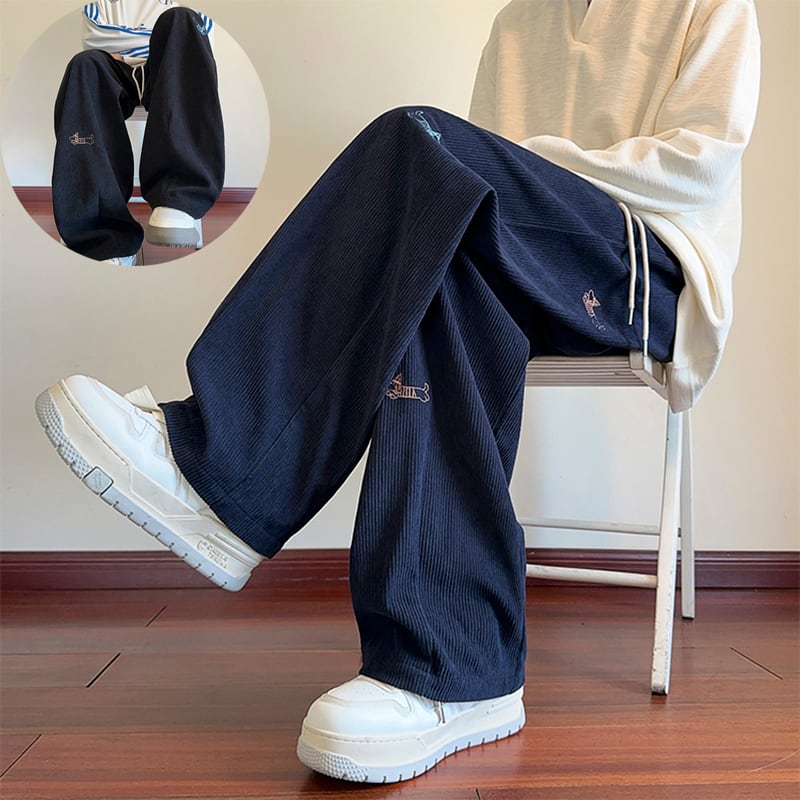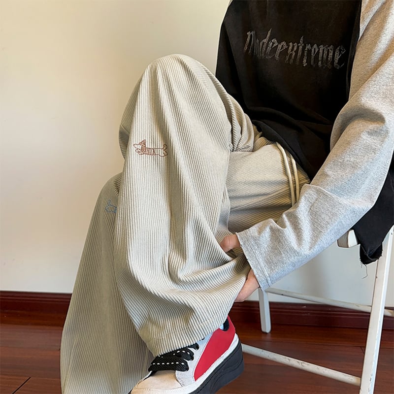 ♜犬刺繍のコーデュロイパンツ!【悟シリーズ】★ズボン★ ユニセックス コーデュロイ 3color ボトムス カジュアルパンツ
