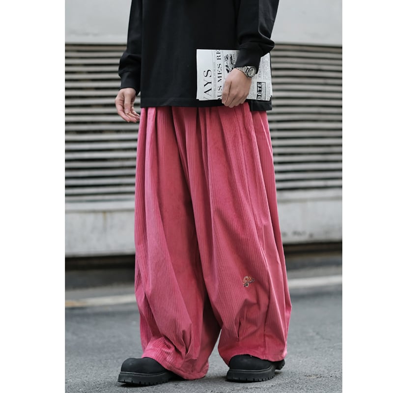 ♜コーデュロイのダボパン。レトロな落ち感!【MUMUシリーズ】★チャイナ風ズボン★ ユニセックス ゆったり 4color ボトムス カジュアルパンツ
